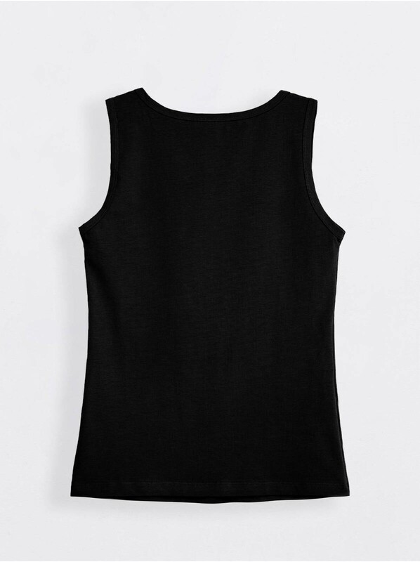 Майка женская бельевая из однотонного трикотажного полотна с глубоким вырезом горловины по переду. Горловина и пройма окантованы бейкой.