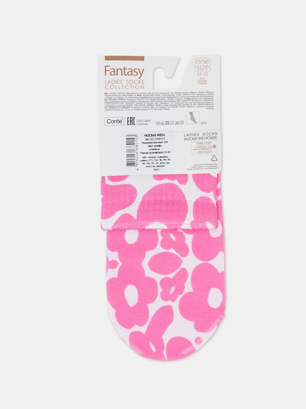 Укороченные носки Fantasy с хлопком и печатными рисунками так оригинальны, что вам захочется включить в свой гардероб всю коллекцию. Будьте готовы к стильным экспериментам!· укороченная модель· универсальный размер· эластичный рельефный паголенок-резинка· фантазийный печатный рисунок · мягкое и эластичное полотно с хлопком.
