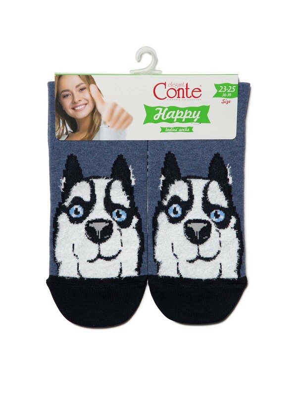 Носки женские CONTE Хлопковые носки HAPPY с пушистым рисунком "Хаски"