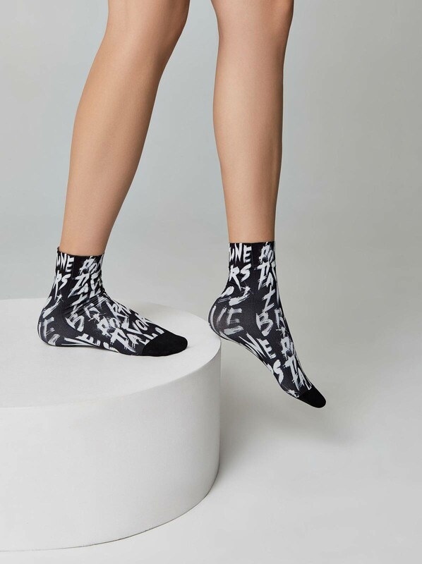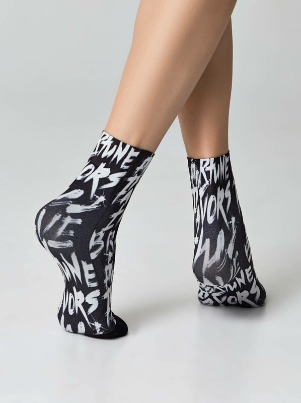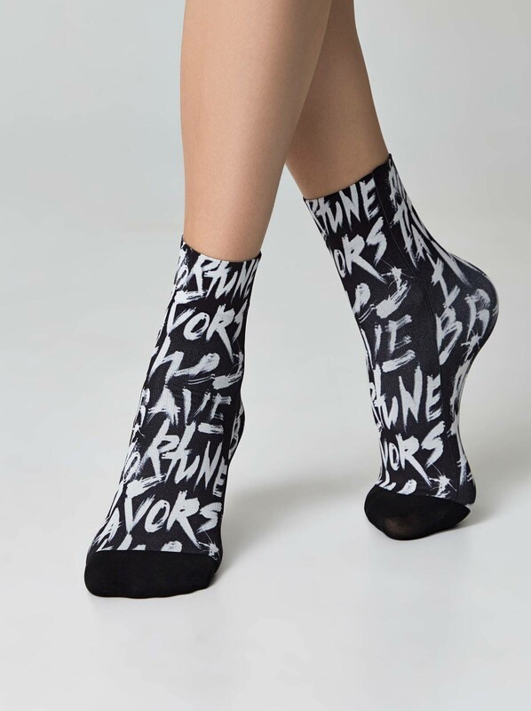 Плотные носки с особенно устойчивым рисунком, нанесенным с помощью термотрансферной печати, станут стильным и индивидуальным акцентом в повседневных образах. Термотрансферная печать - процесс, при котором специальная краска на бумажном носителе резко нагревается, переходит из твердого состояния в газообразное и переносится с бумаги на носки, глубоко проникая в волокна и создавая устойчивое изображение. · 70 den· плотные и эластичные· рисунок, нанесенный с помощью термотрасферной печати· использование черной полиамидной нити для контрастности рисунка· мысок выделен черной полиамидной нитью· эффект 3D· c бортом· без пятки· стиль начинается с индивидуальности.