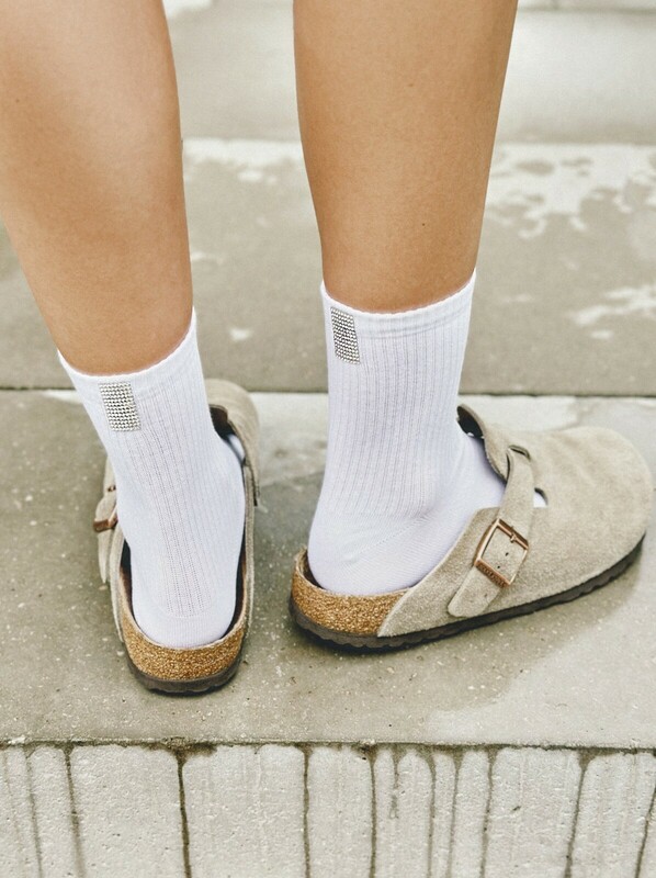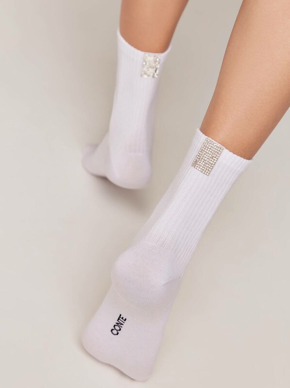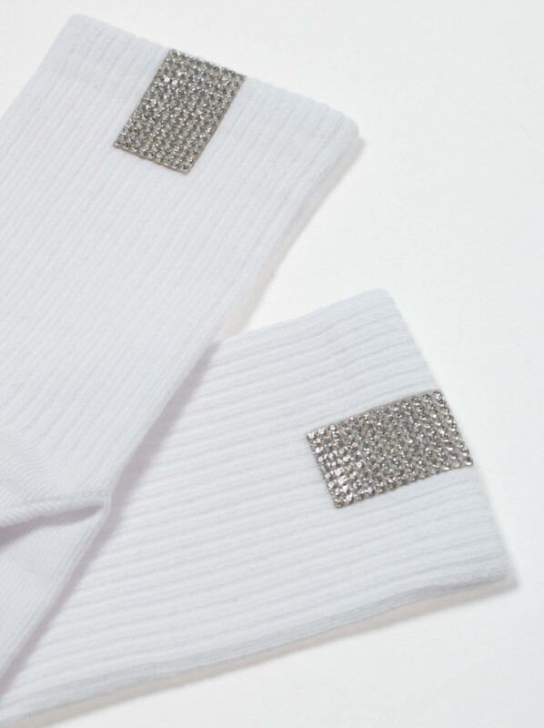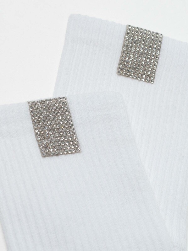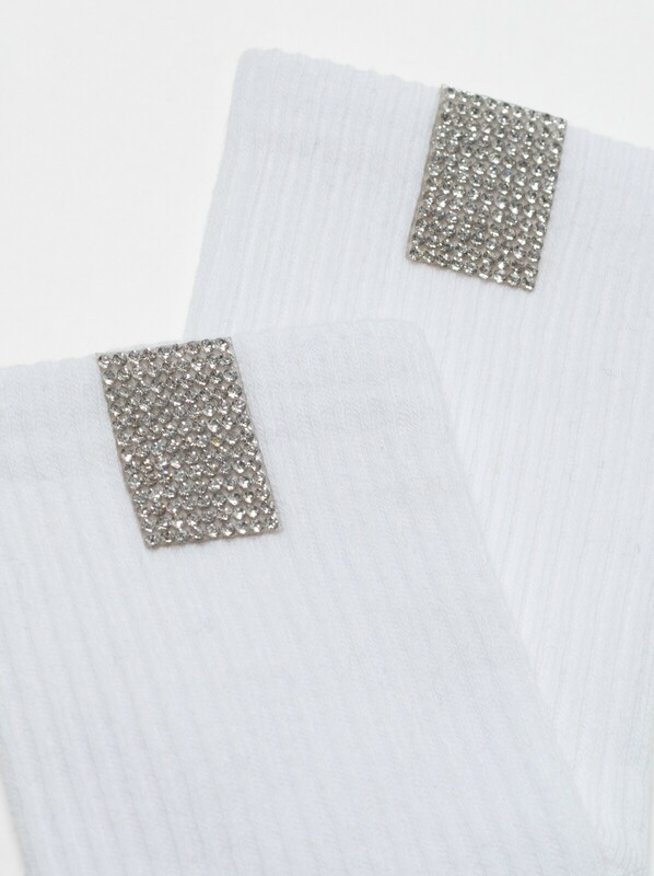 Хлопковые носки в рубчик с сияющим декором из стразов созданы, чтобы стать оригинальным акцентом в повседневном и спортивном образе. · комфортно облегающие и эластичные· в рубчик· сзади серебристая полоса со стразами· стиль начинается с индивидуальности. bumbac 62%, poliamida 35%, elastan 3%