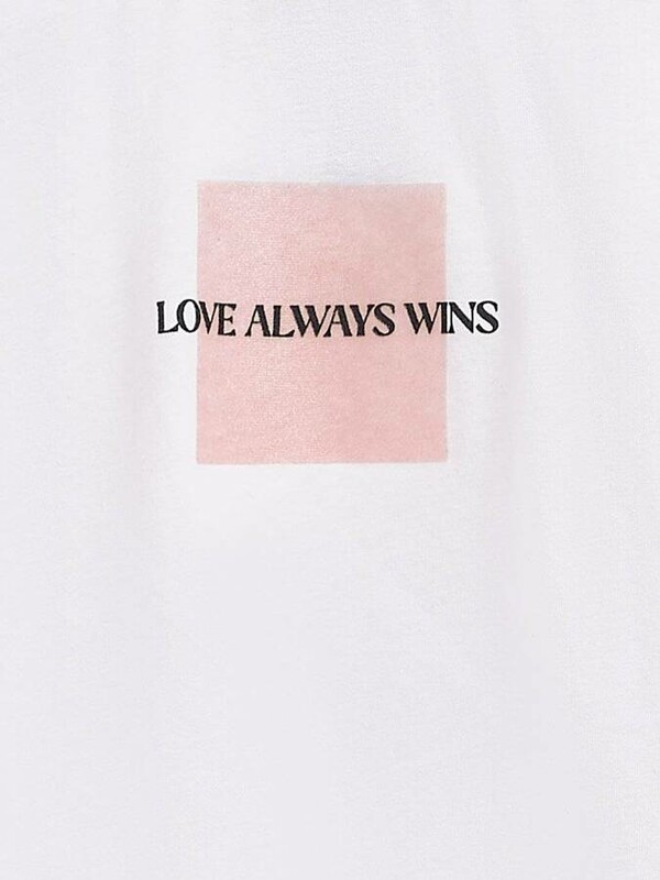Футболка из хлопка станет основой для множества расслабленных базовых образов, а стильный рисунок добавит вашему повседневному гардеробу больше индивидуальности. • прямой крой • круглый вырез горловины • притачная планка • спущенная линия плеч • короткие втачные рукава с манжетами • мягкий и приятный к телу хлопок • стильный рисунок «Love always wins» • сохранение формы и цвета при соблюдении рекомендаций по уходу • безупречный стиль и абсолютная свобода в движениях • всегда приятно открывать новые грани в привычной вещи. bumbac 100%