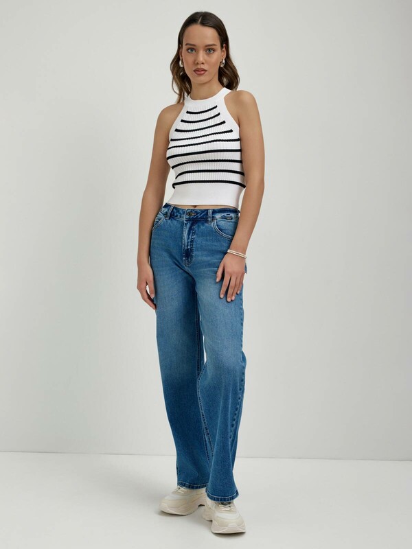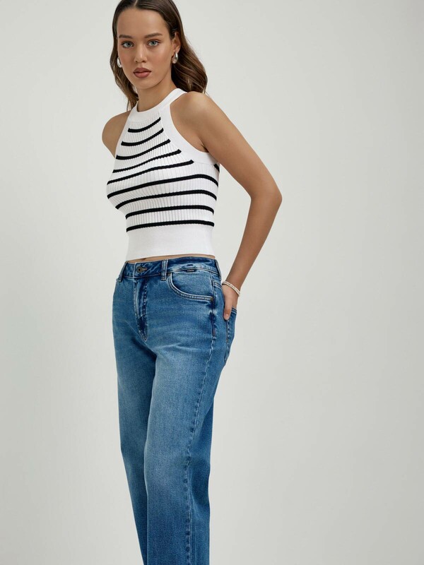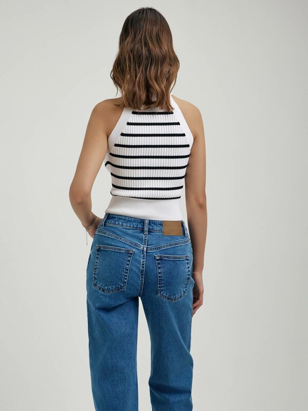 Прилегающий топ в полоску с горловиной халтер и открытыми плечами поможет подчеркнуть индивидуальность и сделает повседневный образ элегантным. Модель изготовлена из тонкой шелковистой пряжи на основе вискозы в эластичном переплетении ластик со сменой полос. PREMIUM VISCOSE: вискоза премиального качества легкая, гладкая, с приятным матовым блеском. Вязаный трикотаж с вискозой приятно холодит, а небольшое количество полиэстра в составе помогает ей сохранять форму. Пряжа устойчива к разрывам, образованию катышек, усадке. · круглая горловина халтер· без рукавов· прилегающий силуэт· гладкая и приятная к телу пряжа с вискозой· фактурное переплетение ластик со сменой полос· сохранение формы и цвета при соблюдении рекомендаций по уходу· лаконично, женственно и элегантно.