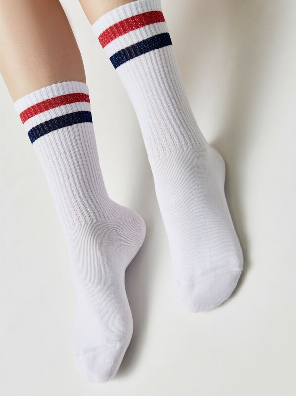 Носки женские CONTE Хлопковые носки с яркими полосками из люрекса