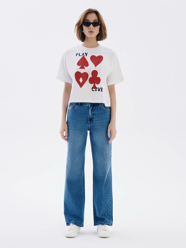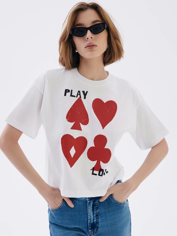 Свободная футболка из хлопка станет основой для множества расслабленных базовых образов, а стильный рисунок добавит вашему повседневному гардеробу больше индивидуальности.