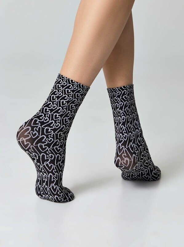 Плотные носки Fantasy с контрастными рисунками добавят индивидуальности в ваш повседневный образ. Будьте готовы к стильным экспериментам! • 70 den • плотные и эластичные • идеальное облегание • контрастный рисунок «Love» • без пятки • с бортом • стиль начинается с индивидуальности. poliamida 85%, elastan 15%