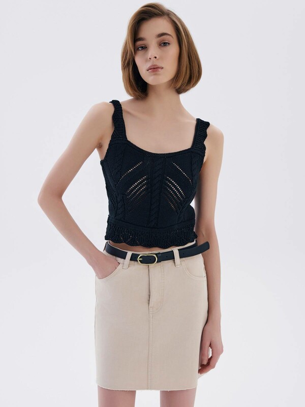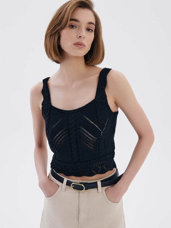 Укороченный топ из пряжи с хлопком связан ажурным переплетением, имитирующим узоры, которые получаются с помощью кропотливого ручного вязания. PREMIUM COTTON: хлопок премиального качества мягкий, приятный ктелу и «дышащий». · топ на бретелях· квадратная линия декольте· прямой силуэт· мягкая и приятная к телу пряжа с хлопком· ажурное переплетение, имитирующее ручное вязание· создан, чтобы стать одной из любимых вещей в вашем гардеробе.