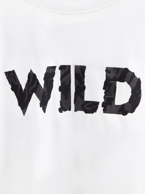 Укороченная футболка из хлопка с рисунком и вышивкой "Wild" станет основой для множества расслабленных базовых образов, а стильный рисунок добавит вашему повседневному гардеробу больше индивидуальности.