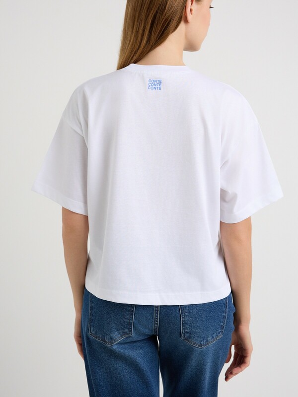 Свободная футболка из хлопка станет основой для множества расслабленных базовых образов, а стильный рисунок добавит вашему повседневному гардеробу больше индивидуальности.