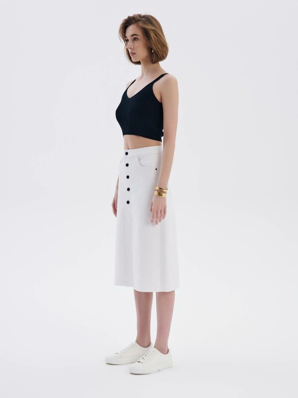 V-образный вырез, переплетение ластик и безупречная посадка по фигуре – этот базовый топ точно заслуживает быть в вашем гардеробе. · V-образный вырез· тонкие бретели· прилегающий силуэт· укороченная модель· фактурное переплетение ластик· приятная к телу пряжа с вискозой· сохранение формы и цвета при соблюдении рекомендаций по уходу· лаконично, женственно и элегантно.
