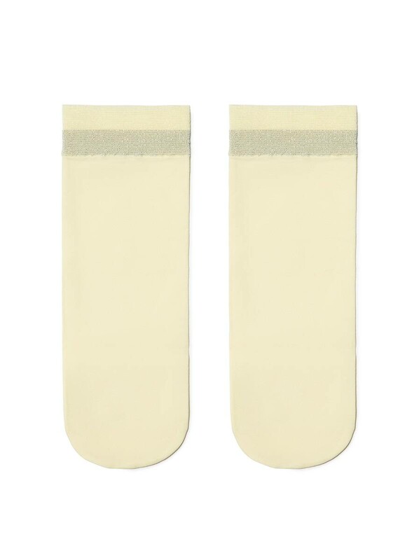 Однотонные фантазийные носки с сияющим бортиком из люрекса созданы для девушек, которые любят выглядеть оригинально и с удовольствием подчеркивают свою индивидуальность. Носки комфортные и невероятно стильные.