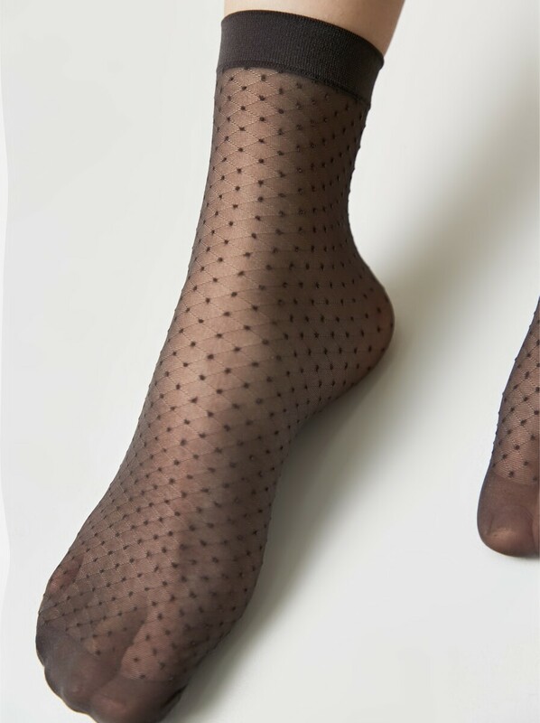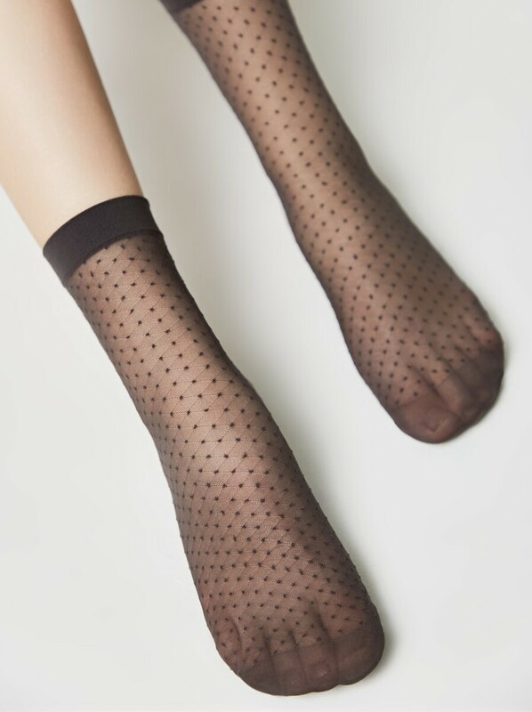 Эластичные полупрозрачные носки в горошек станут стильным акцентом вашего модного образа. Вы оцените удобный эластичный борт и комфортную облегающую посадку на ноге. полиамид 90%, эластан 10%