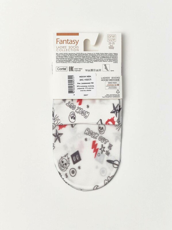 Мягкие эластичные носки Fantasy с креативными рисунками, выполненным с помощью термопечати, подарят абсолютный комфорт и добавят в образ индивидуальности. Будьте готовы к модным экспериментам!Лимитированная коллекция. Эксклюзивно в фирменных магазинах бренда и онлайн в интернет-магазине Conte. · классическая длина· креативные рисунки· плотное, эластичное и очень мягкое полотно· лимитированная коллекция.