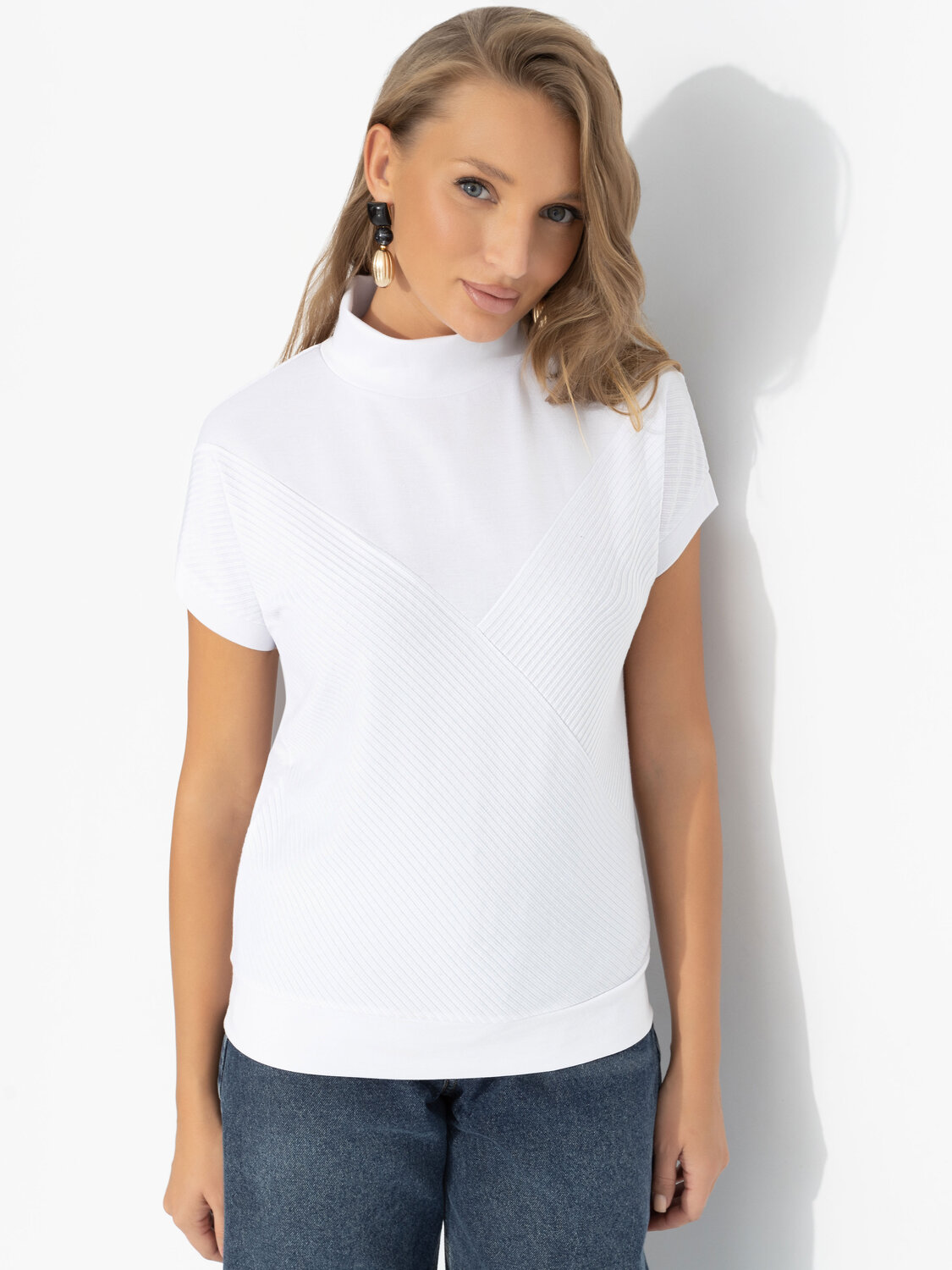 Белый цвет говорит без слов – о свежести, лёгкости и внутреннем равновесии. Она не спешит, просто идёт навстречу дню, ощущая, как мягкая ткань касается кожи. Простой акцент, но в нем – всё настроение утончённости. Водолазка из трикотажа «лапша» с мягкой стойкой и коротким рукавом. Эластичный трикотаж с вискозой создаёт комфортную посадку и подчёркивает изгибы фигуры.