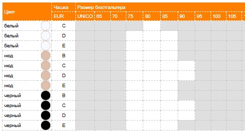 | Цвет | Чашка | Размер бюстгальтера | |||||||||||||