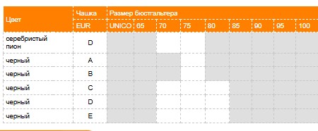 | Цвет | Чашка | Размер бюстгальтера | |||||||||||||