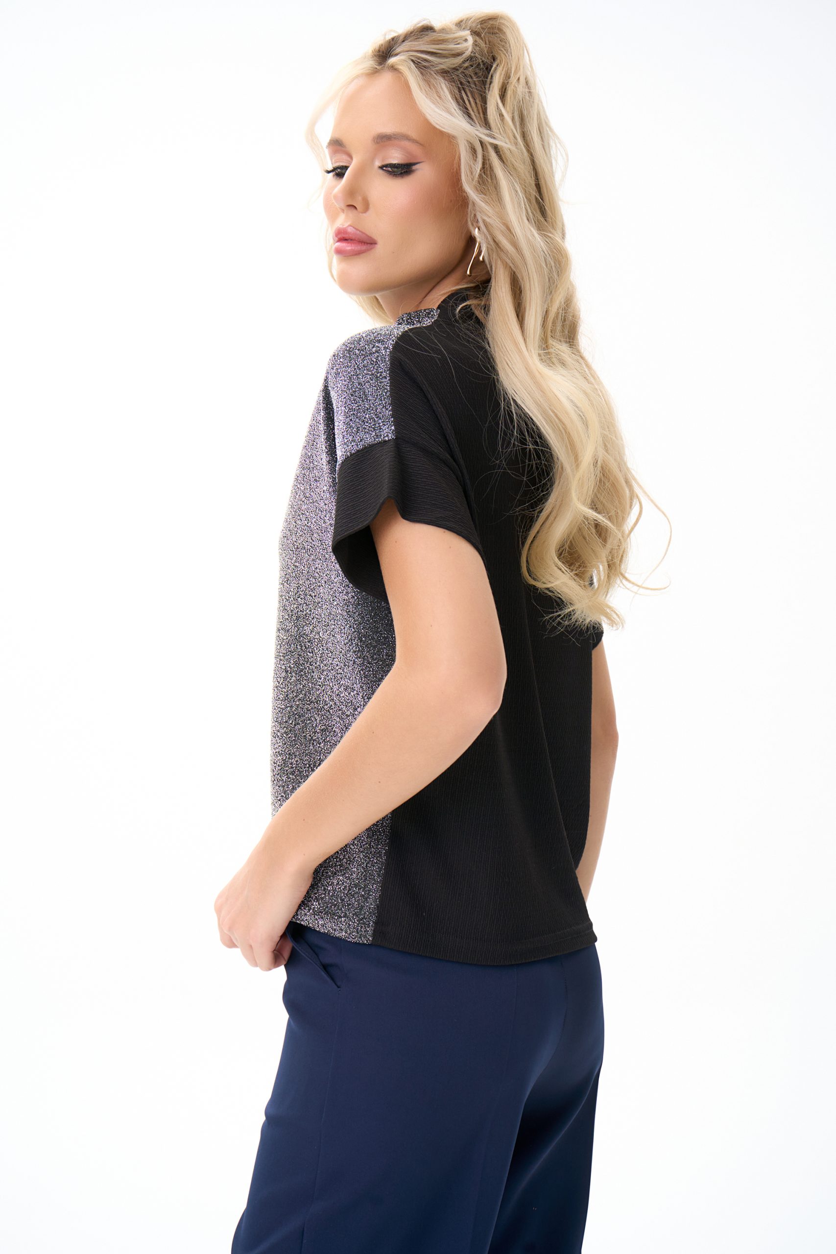 Туника «Лючия» — универсальная модель, выполненная из мягкого эластичного полотна с эффектным мерцающим покрытием. Лёгкий блеск ткани делает образ выразительным, но при этом остаётся в рамках сдержанной элегантности. Свободный силуэт комфортно садится по фигуре, не стесняя движений и визуально корректируя линию плеч. Укороченный рукав дарит аккуратный и женственный акцент, а мягкая драпировка в области горловины создаёт более утончённый вид. Туника сочетается с брюками, юбками и базовыми вещами, подойдёт и для повседневных образов, и для вечерних выходов. Лёгкая, универсальная и всегда уместная — модель, которая смотрится стильно без усилий.
