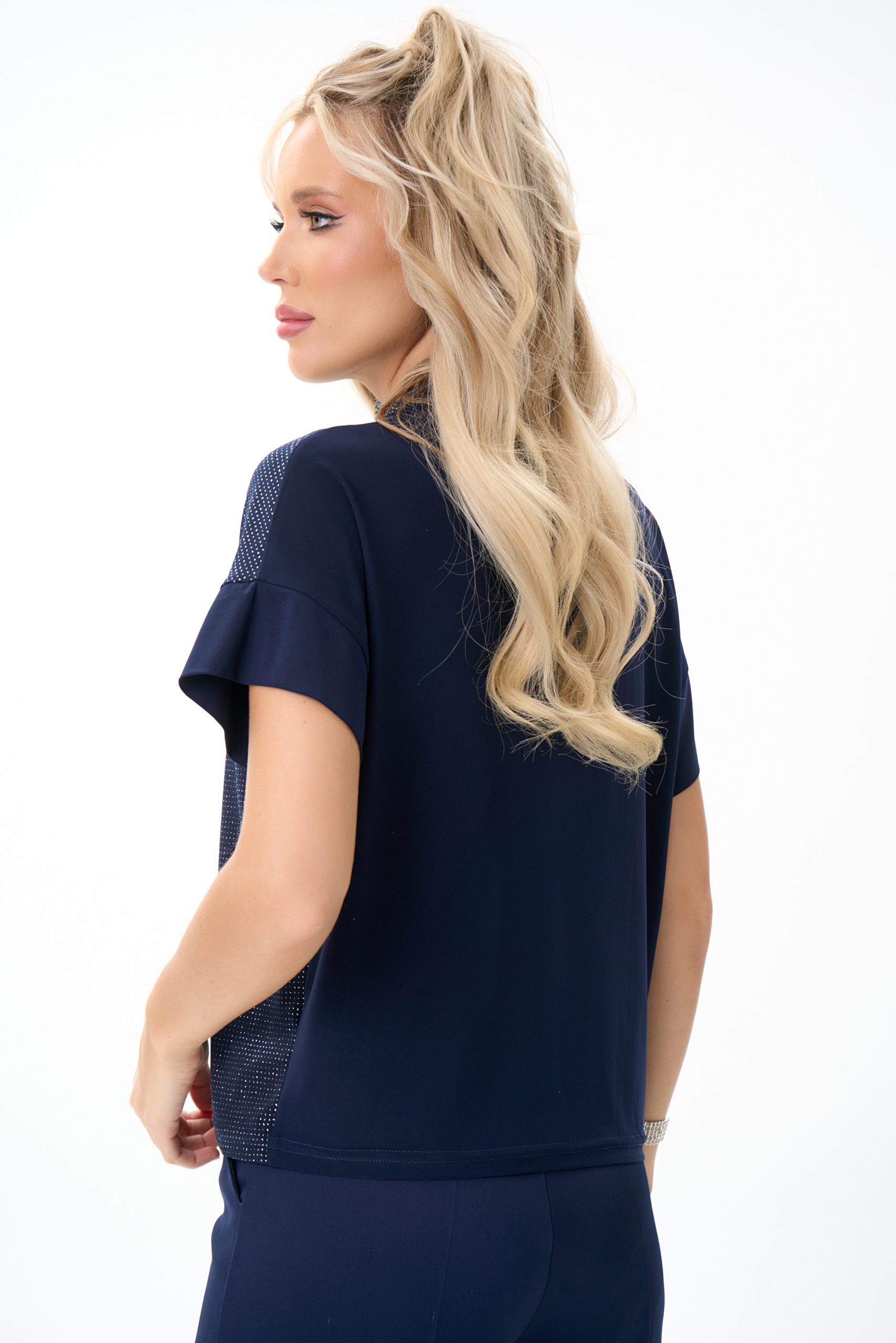 Туника «Лючия» — универсальная модель, выполненная из мягкого эластичного полотна с эффектным мерцающим покрытием. Лёгкий блеск ткани делает образ выразительным, но при этом остаётся в рамках сдержанной элегантности. Свободный силуэт комфортно садится по фигуре, не стесняя движений и визуально корректируя линию плеч. Укороченный рукав дарит аккуратный и женственный акцент, а мягкая драпировка в области горловины создаёт более утончённый вид. Туника сочетается с брюками, юбками и базовыми вещами, подойдёт и для повседневных образов, и для вечерних выходов. Лёгкая, универсальная и всегда уместная — модель, которая смотрится стильно без усилий.