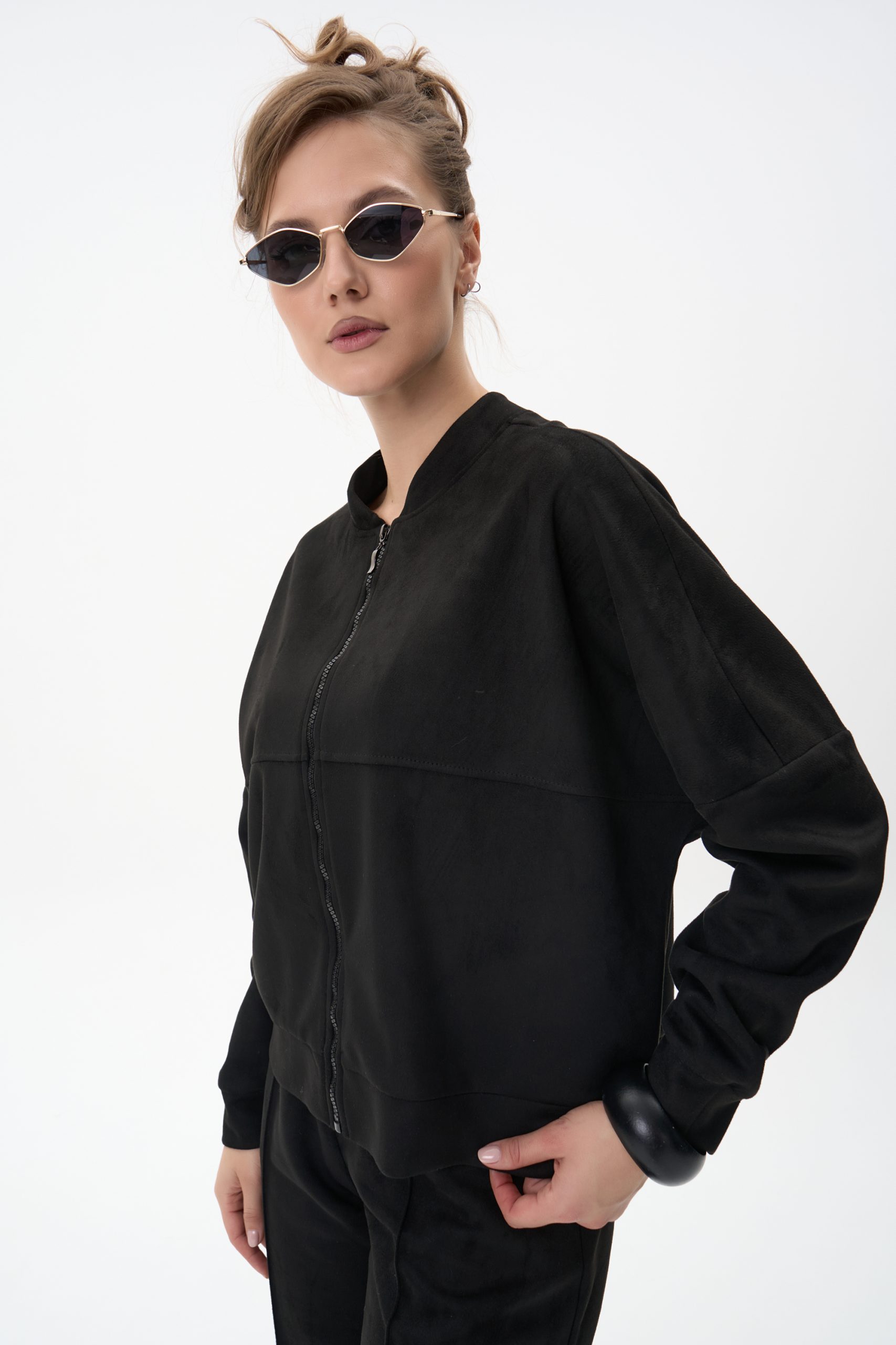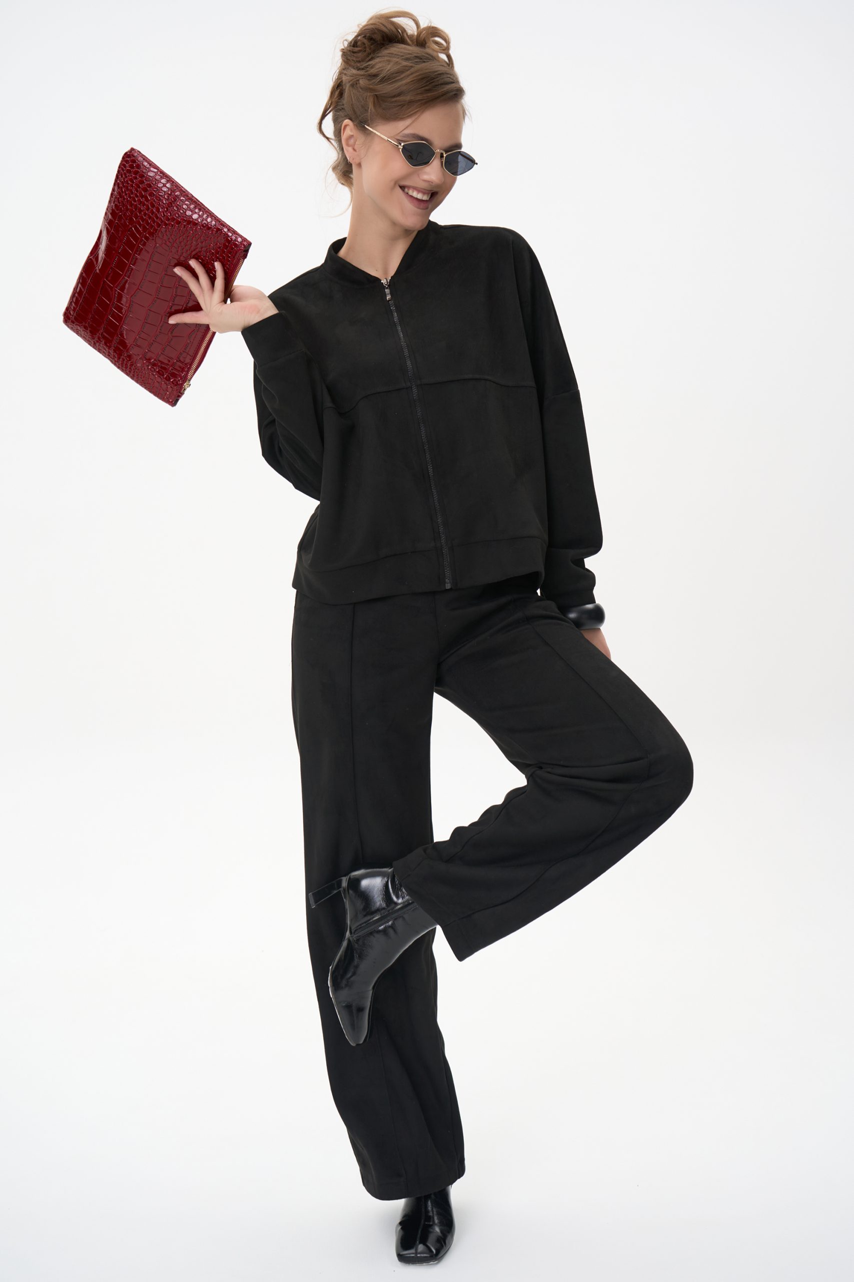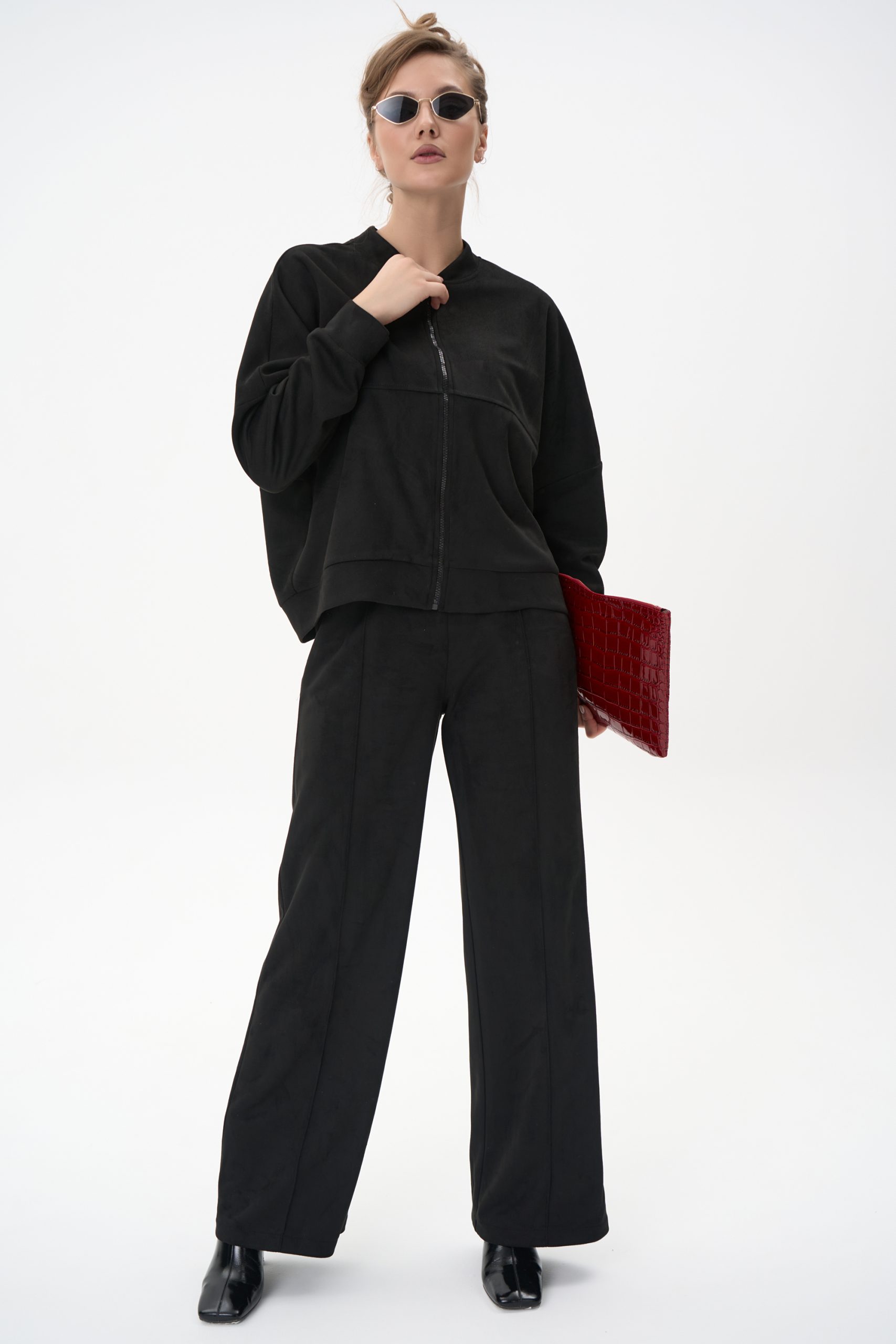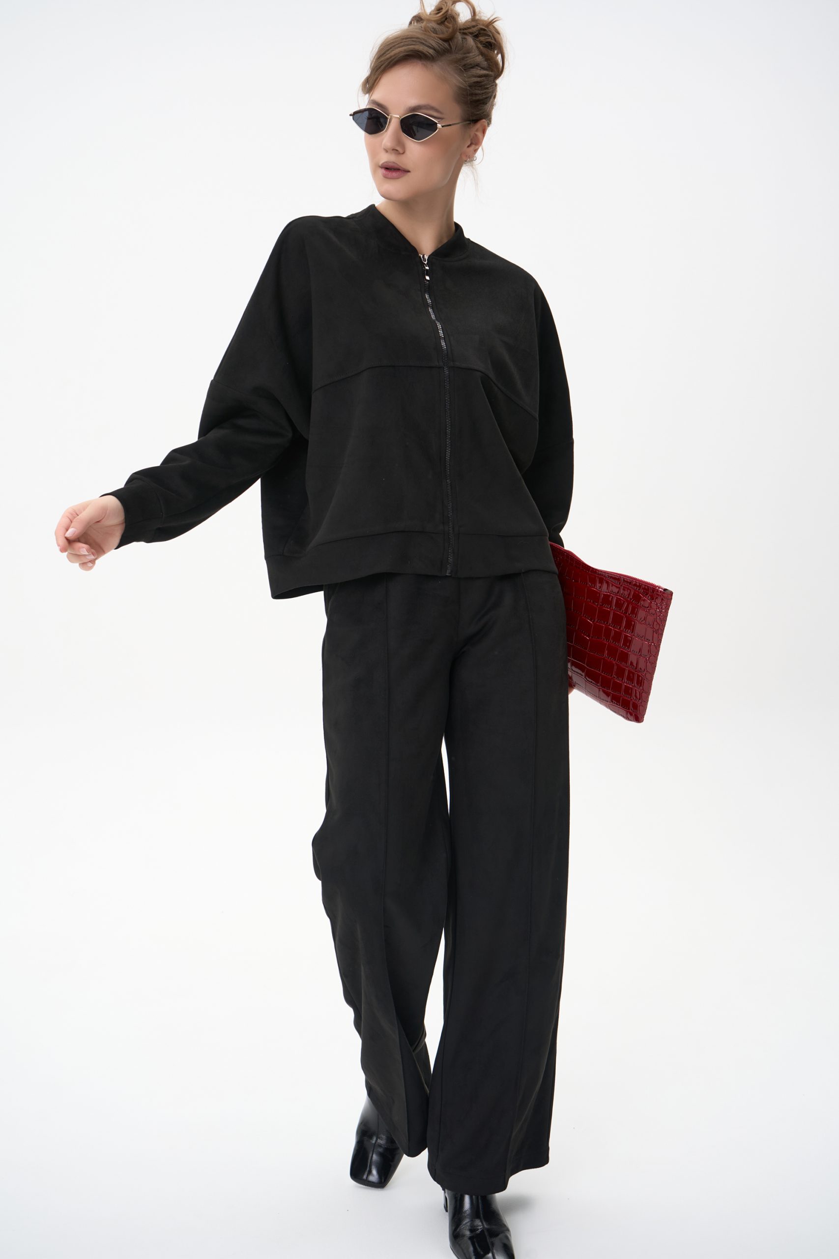 Представляем изысканный и функциональный костюм «Майли» — продуманное сочетание бомбера и брюк, которое объединяет современный стиль и комфорт. Верхняя часть — легкий, лаконичный бомбер, а низ — прямые брюки со стрелками и эластичным поясом.