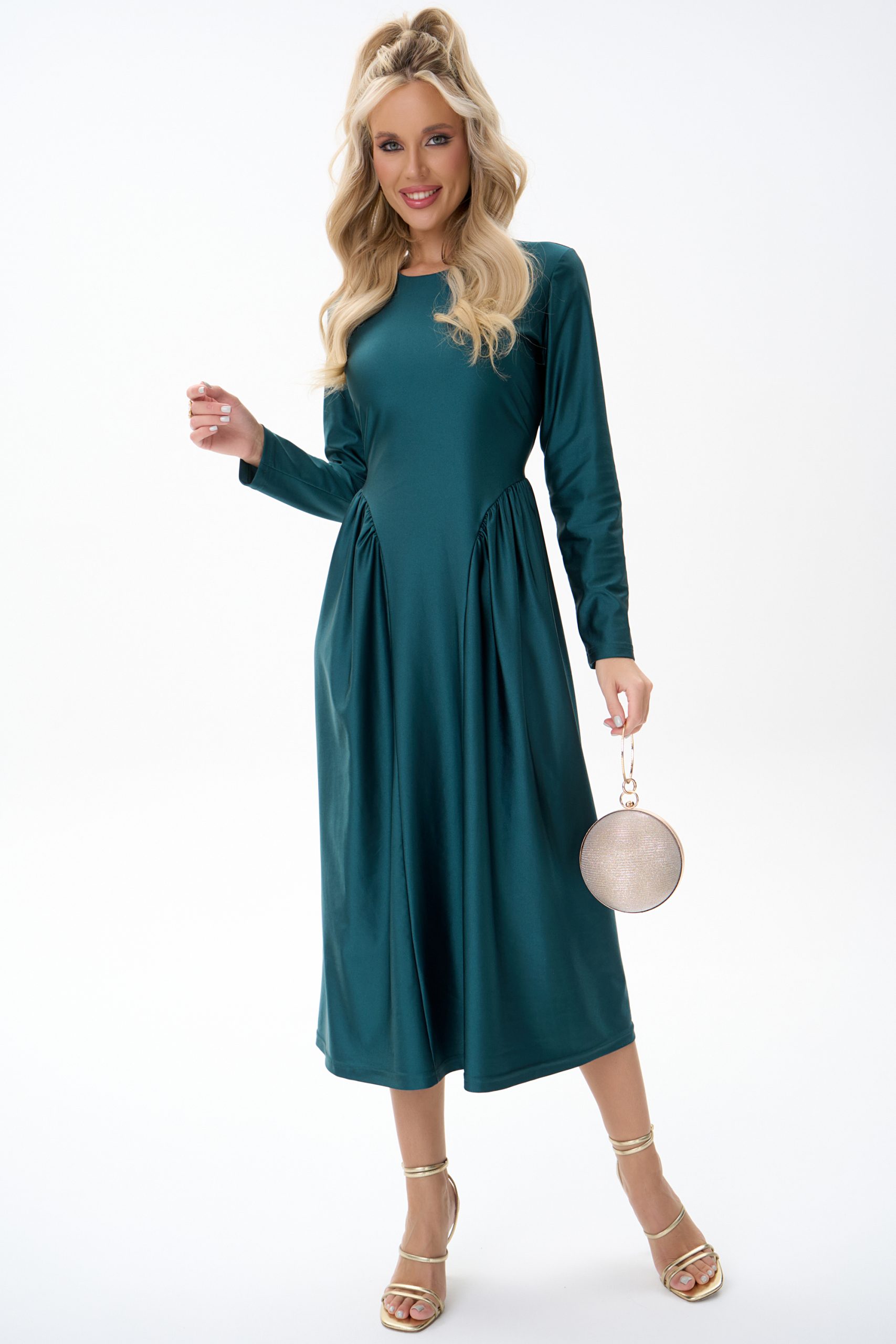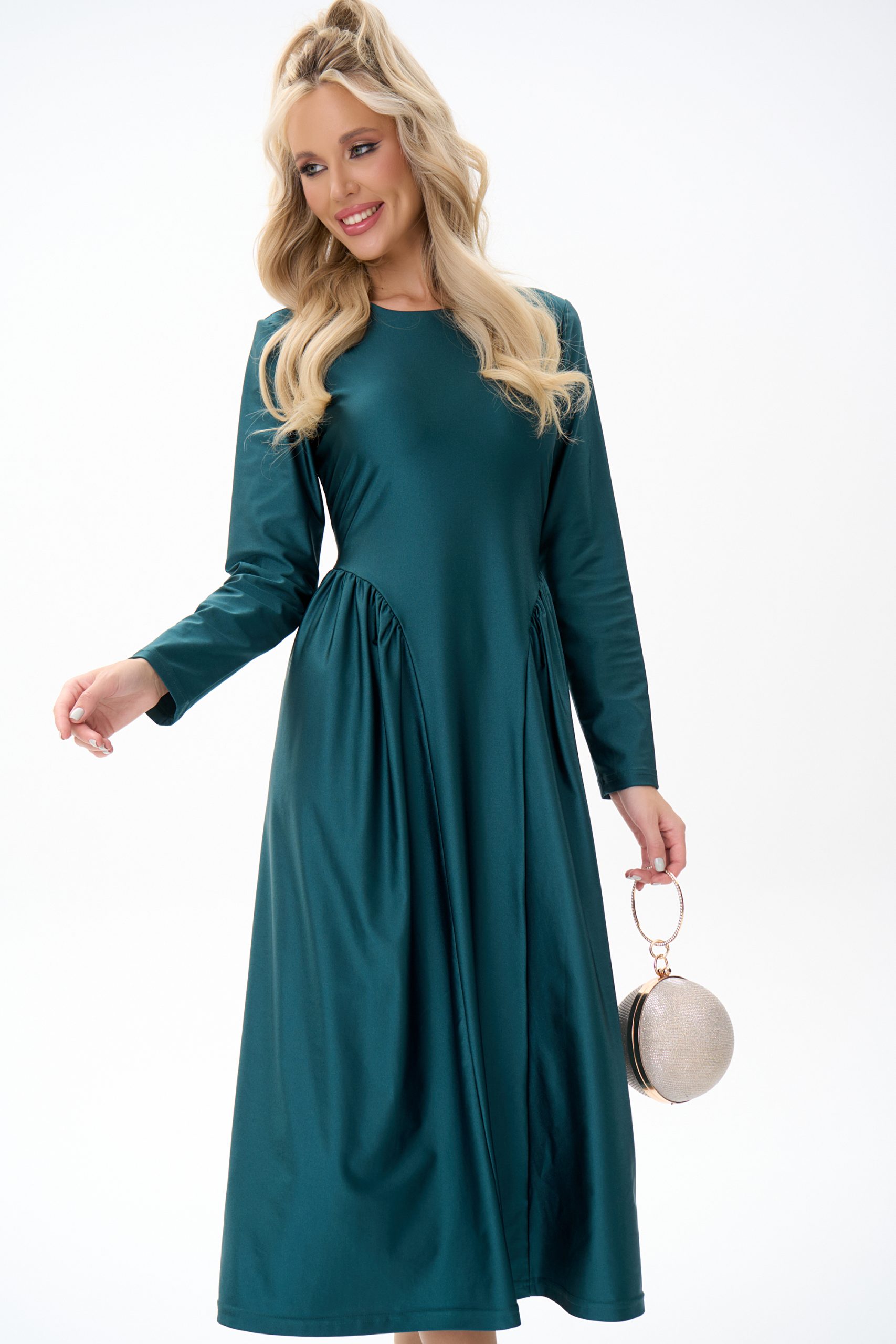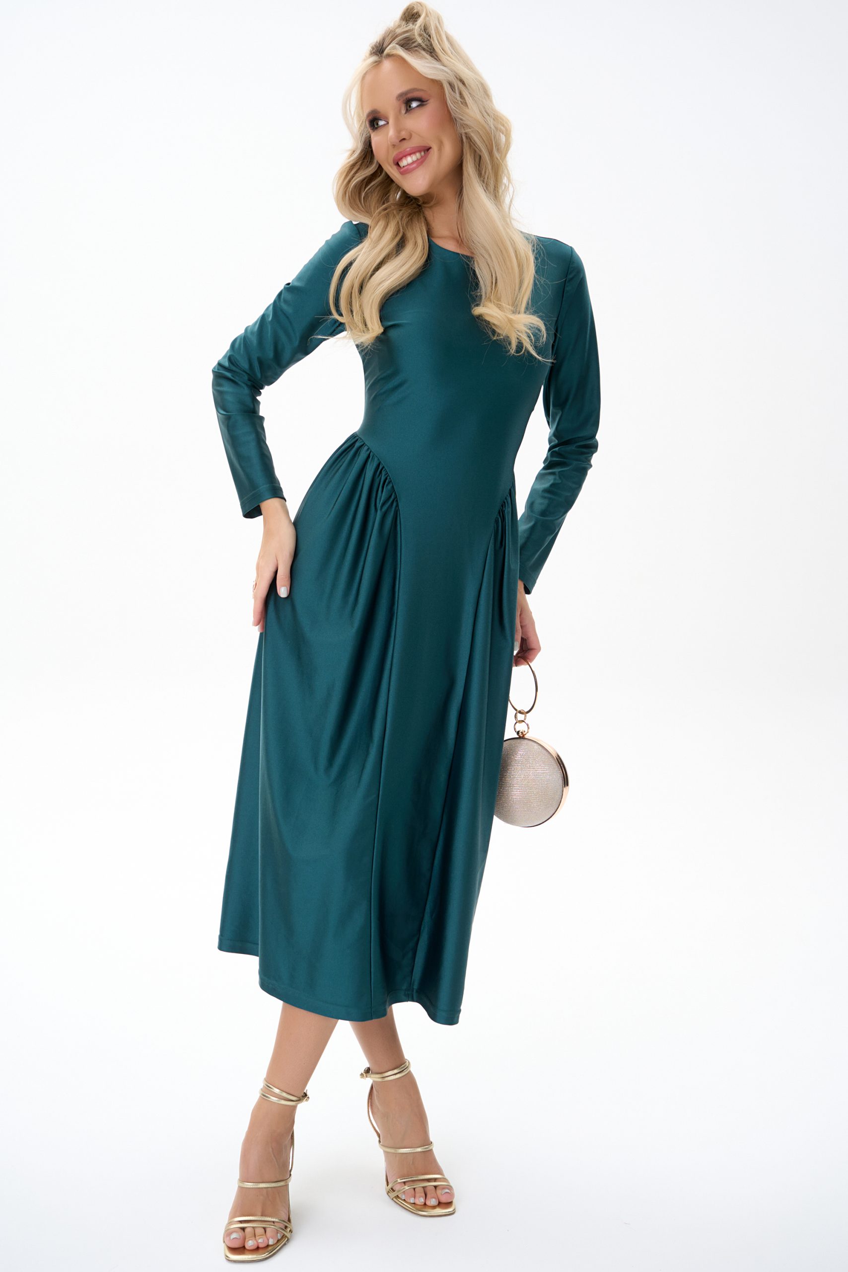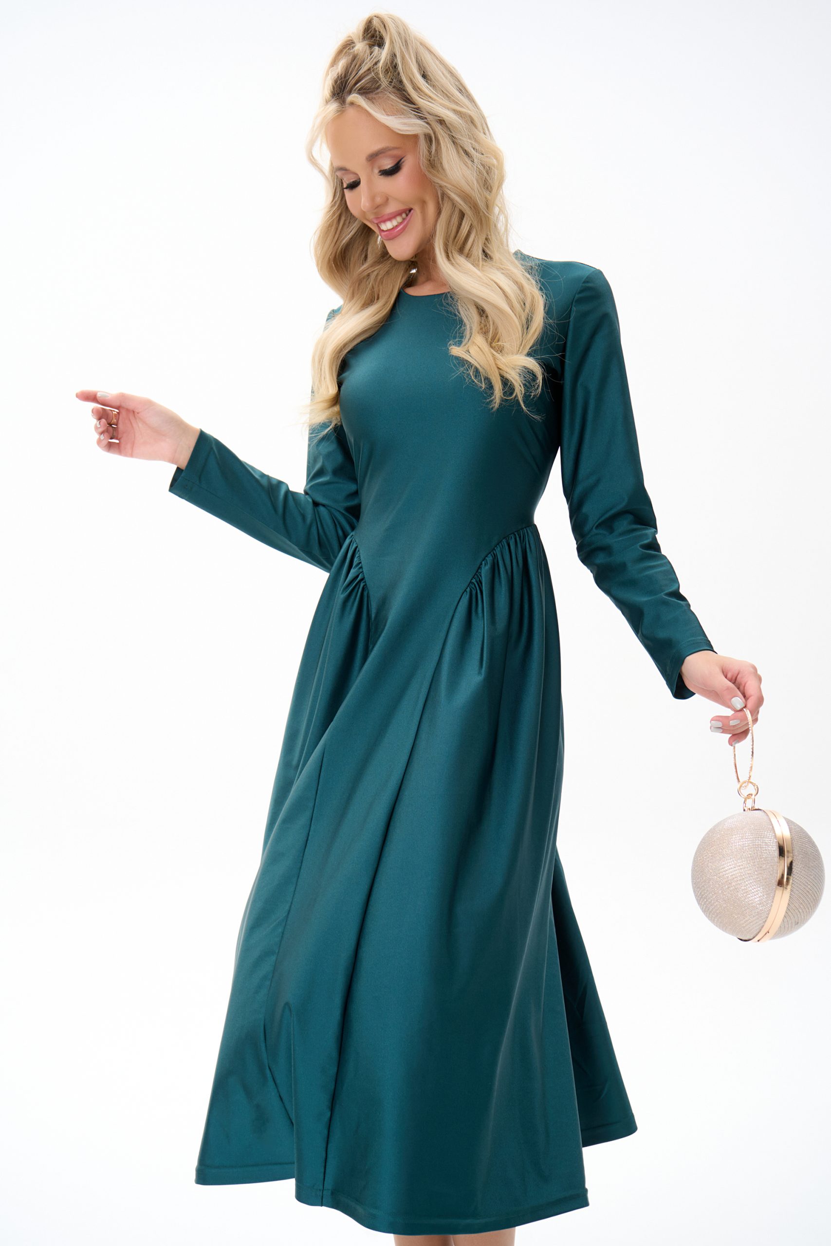 Платье «Донна» — универсальная модель в двух оттенках: классический чёрный и благородный изумруд. Элегантное миди-платье с завышенной линией талии и идеально гладкой посадкой лифа. Мягкие боковые сборки создают красивый объём юбки и подчёркивают женственный силуэт. Плотный эластичный материал с лёгким сатиновым блеском комфортно тянется и плавно драпируется. Лаконичная круглая горловина и длинный рукав делают модель подходящей как для рабочих будней, так и для мероприятий, ужинов и фотосъёмок. Платье смотрится дорого и подчёркивает фигуру без лишних деталей.