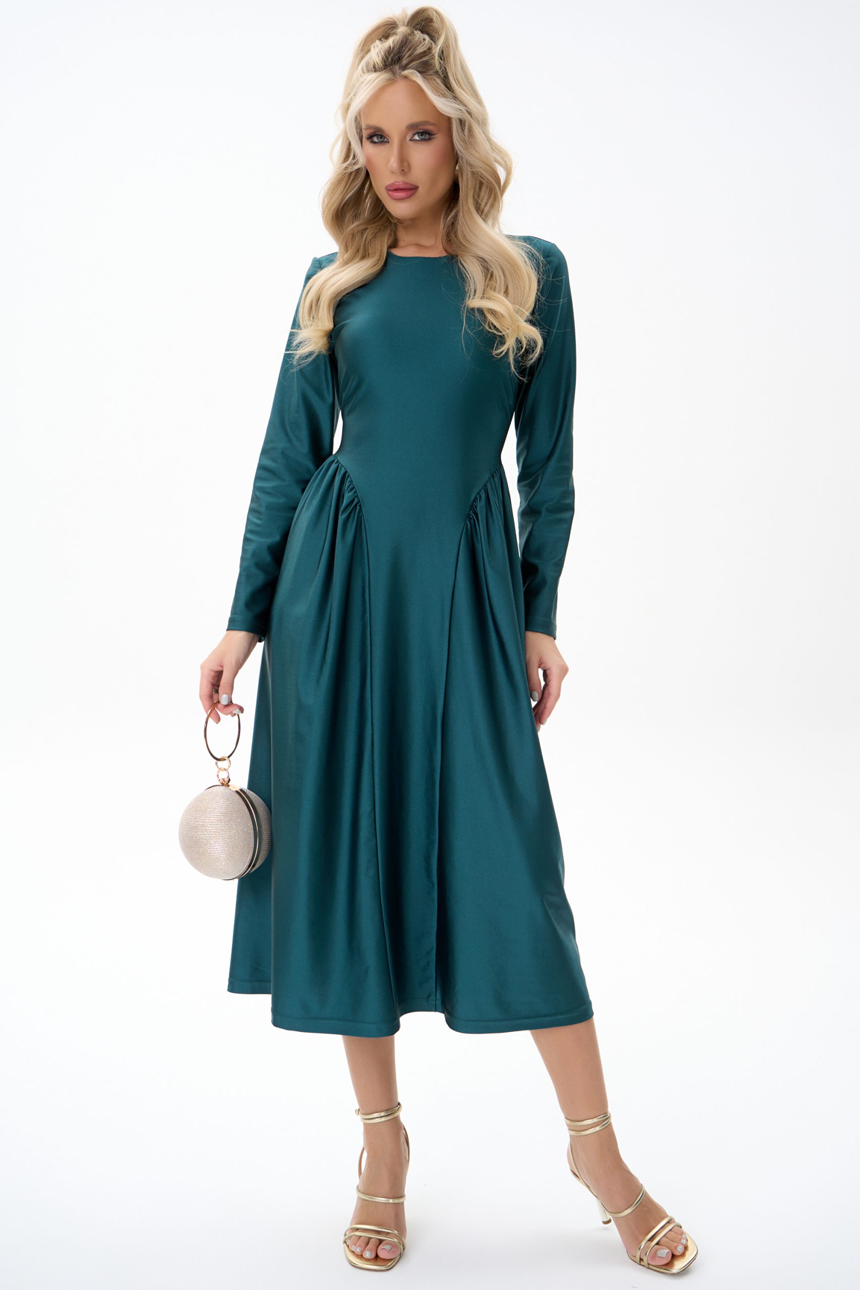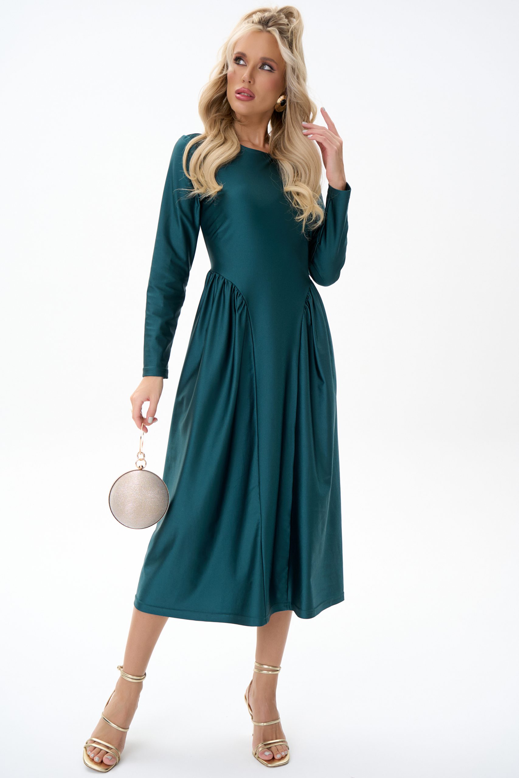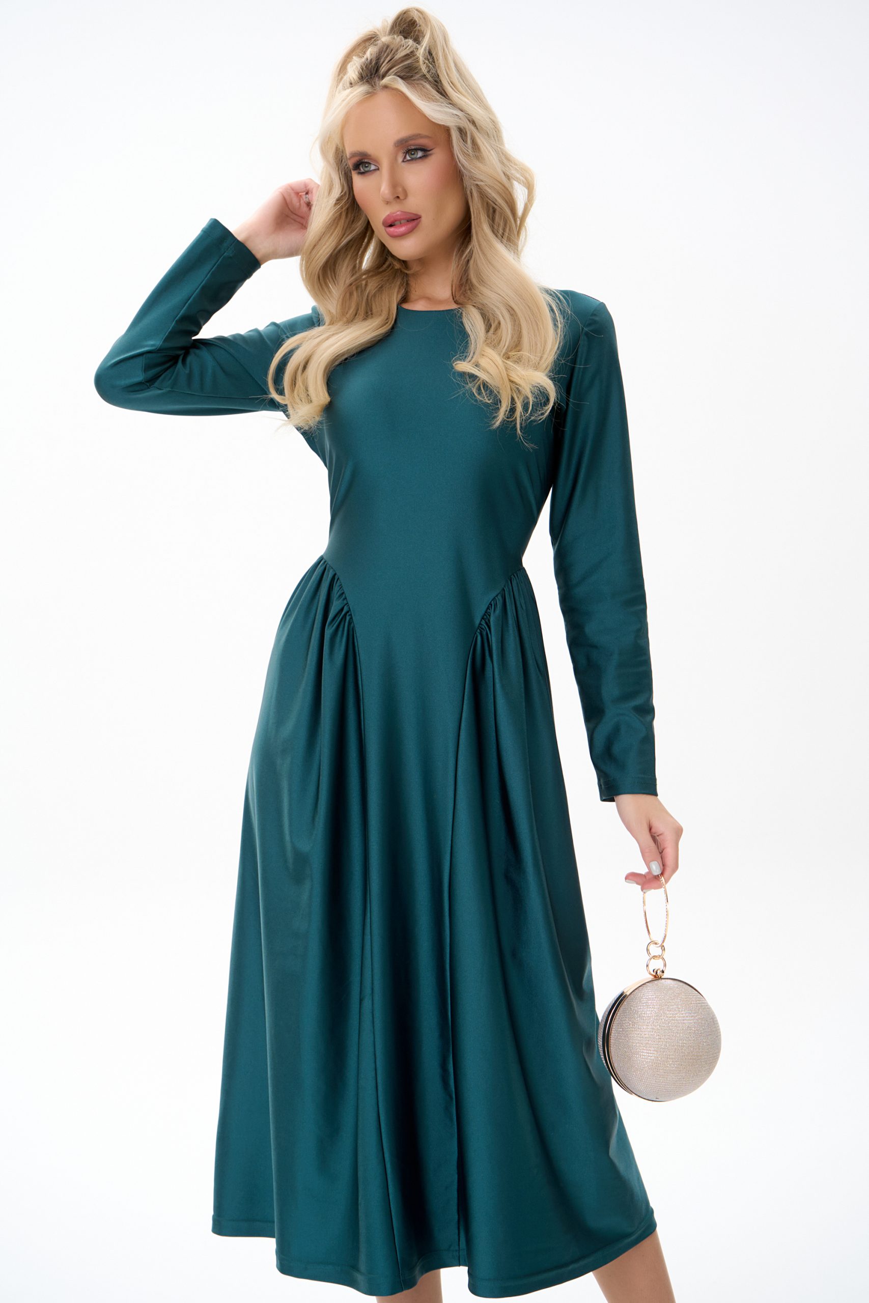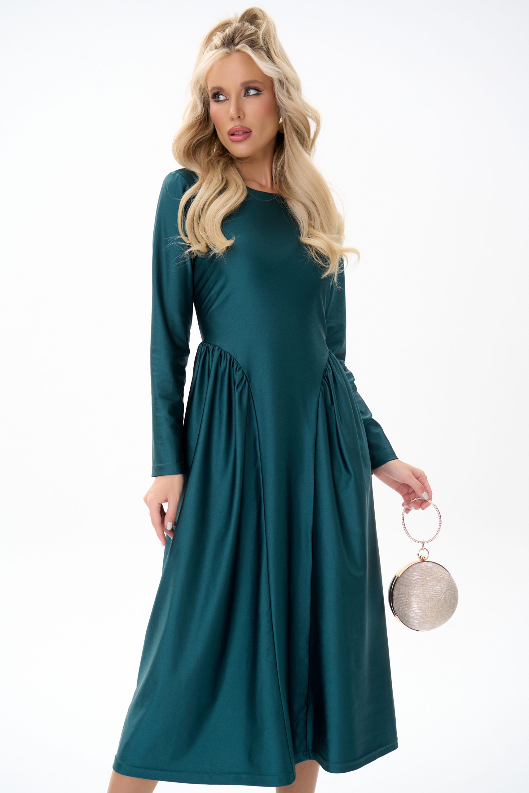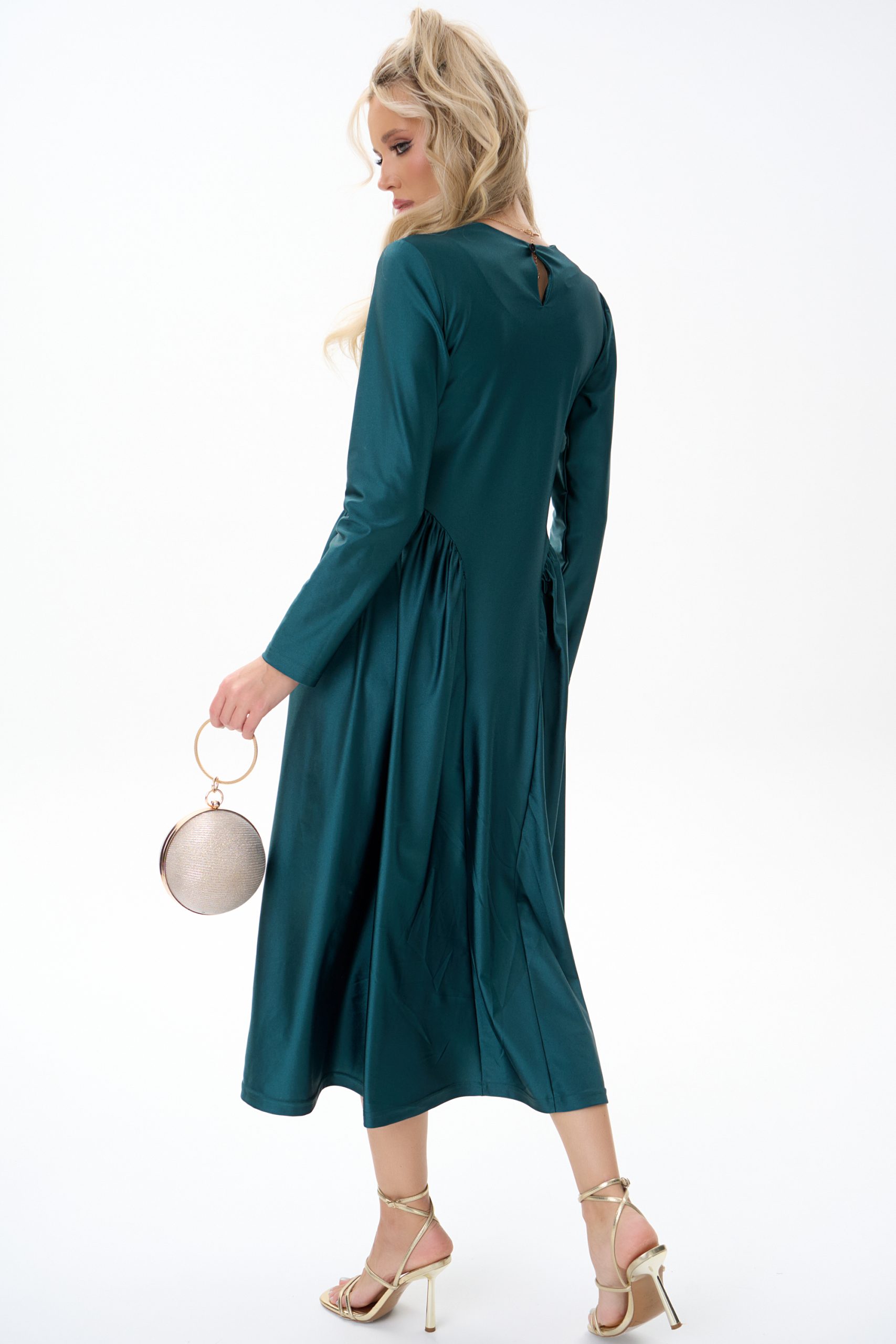 Платье «Донна» — универсальная модель в двух оттенках: классический чёрный и благородный изумруд. Элегантное миди-платье с завышенной линией талии и идеально гладкой посадкой лифа. Мягкие боковые сборки создают красивый объём юбки и подчёркивают женственный силуэт. Плотный эластичный материал с лёгким сатиновым блеском комфортно тянется и плавно драпируется. Лаконичная круглая горловина и длинный рукав делают модель подходящей как для рабочих будней, так и для мероприятий, ужинов и фотосъёмок. Платье смотрится дорого и подчёркивает фигуру без лишних деталей.