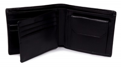 Портмоне мужское из натуральной кожи морского ската. Раскрывается на две створки, плюс одна закрывающаяся на кнопку откидная створка, с 6 карманами под визитные и кредитные карты. Внутри два отделения для купюр, 2 потайных кармана, карман для мелочи на кнопке, 6 карманов для кредитных карт. Все детали внутренней отделки кошелька выполнены из высококачественной телячьей кожи.