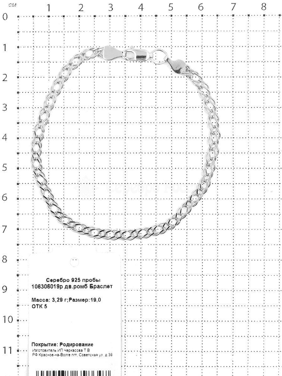 Браслет из серебра родированный - Двойной ромб (вес указан для р-ра 19) 925 пробы 106306019р дв.ромб
