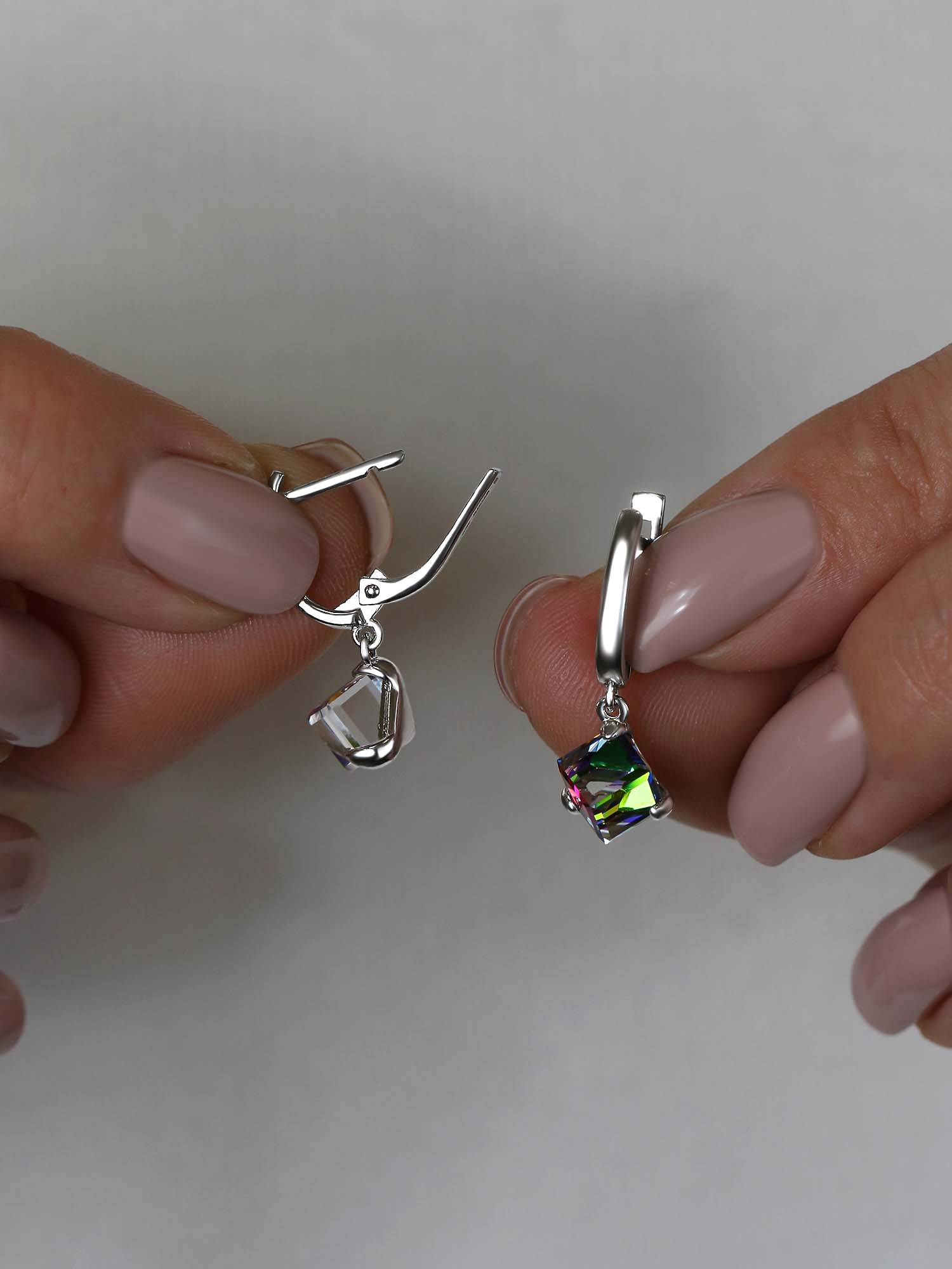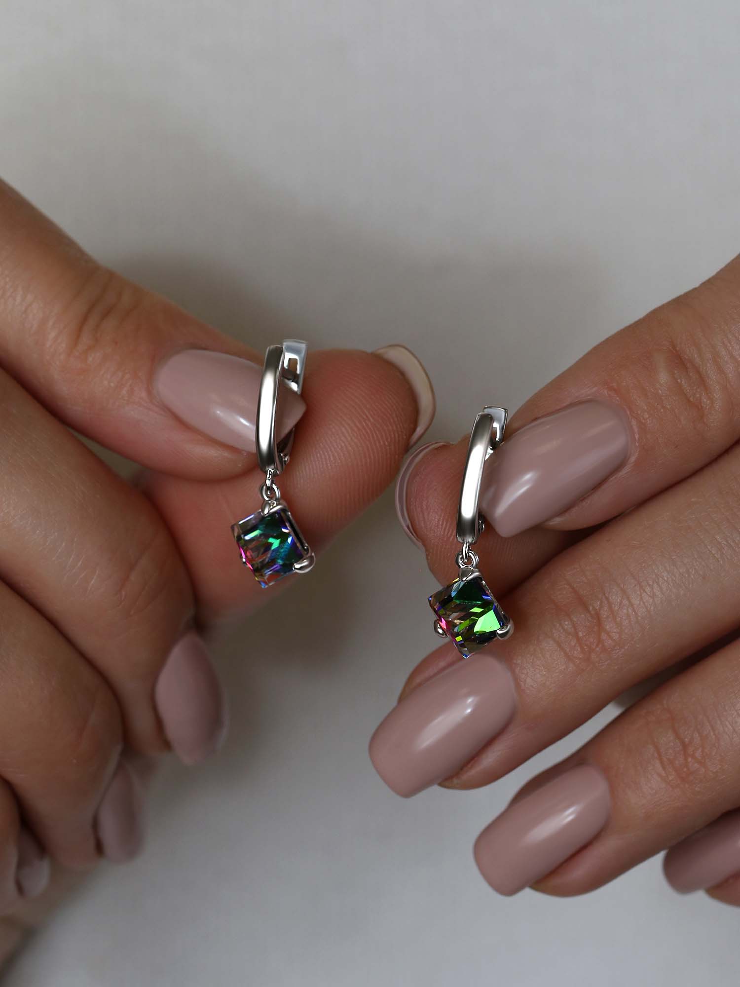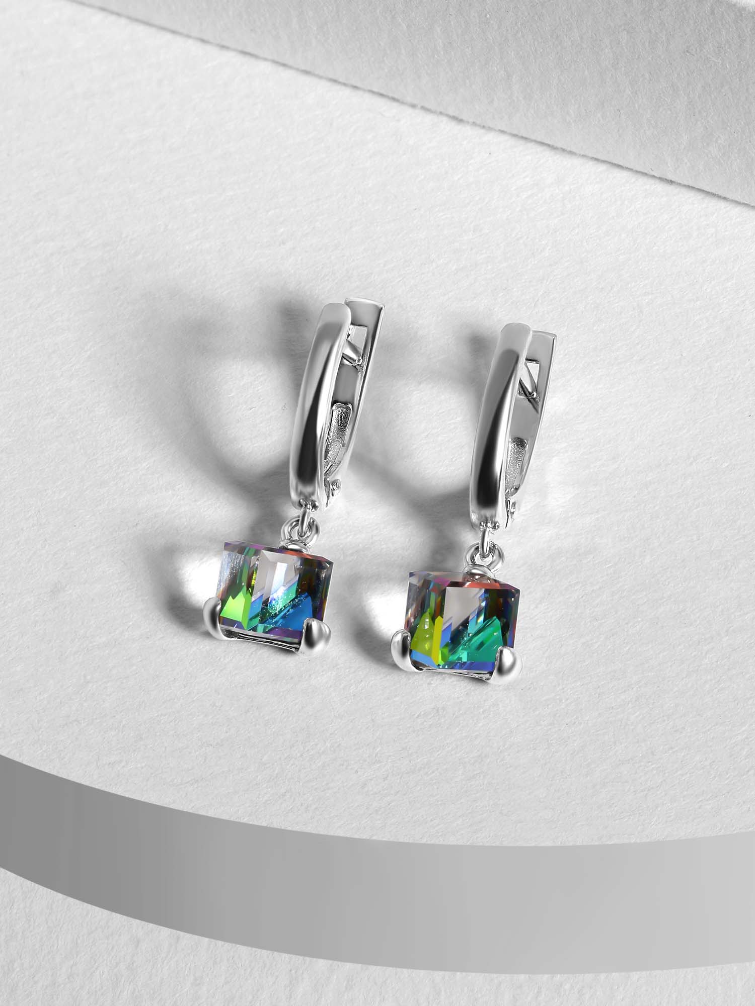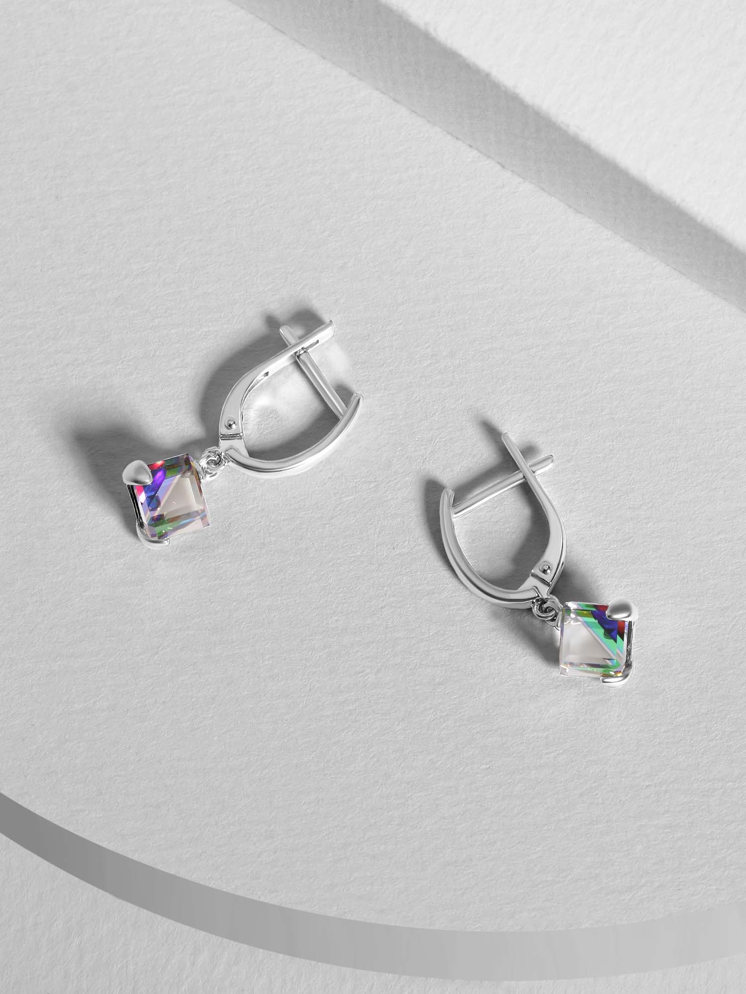 Серьги из серебра с кристаллами премиум Австрия цв. мистик родированные 925 пробы 0072с-001VM