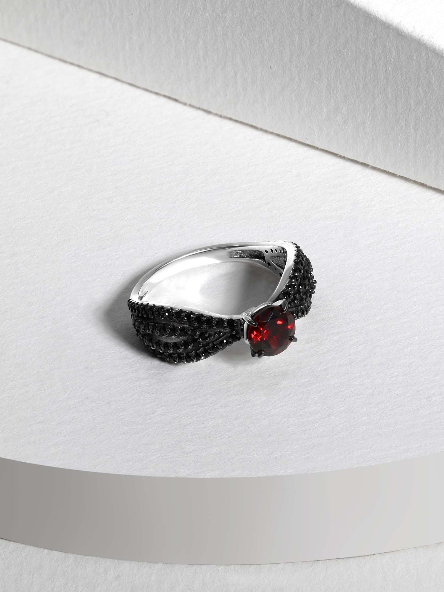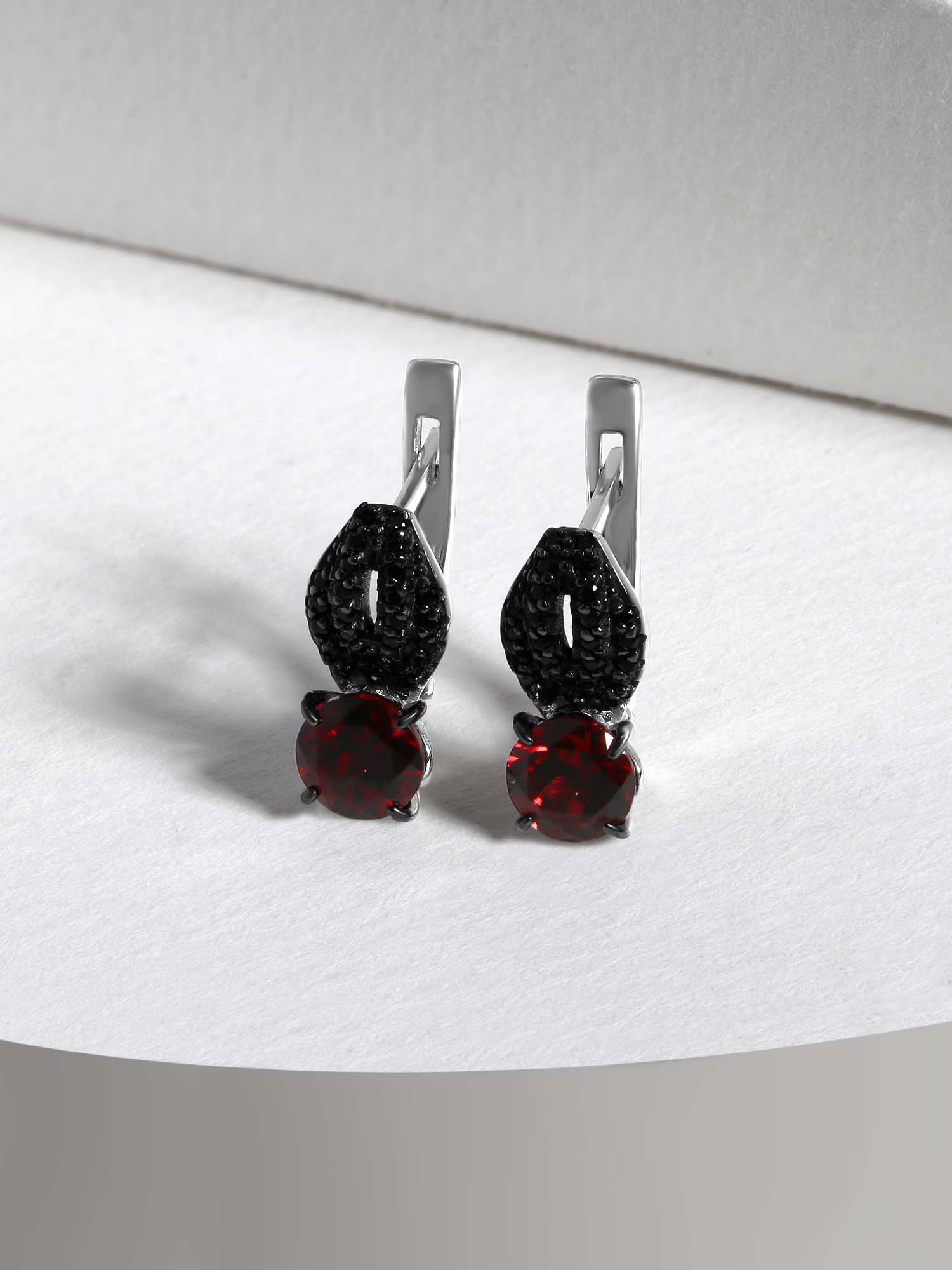 Серьги из серебра с гранатом и чёрной шпинелью родированные 925 пробы 2-534рч40416