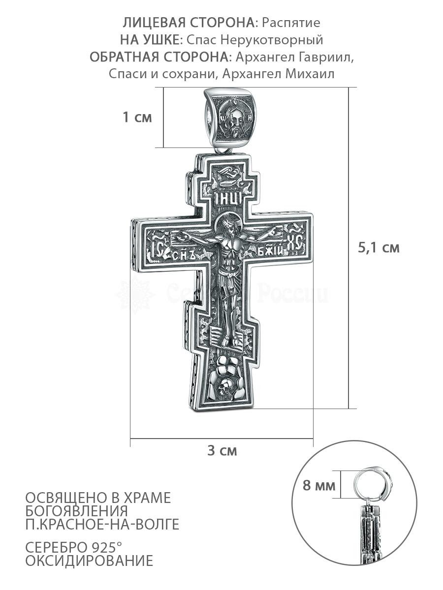 Крест из чернёного серебра - Распятие, Спаc Неpукотвоpный, Архангел Гавриил, Спаси и сохрани, Архангел Михаил ПК-060-3ч