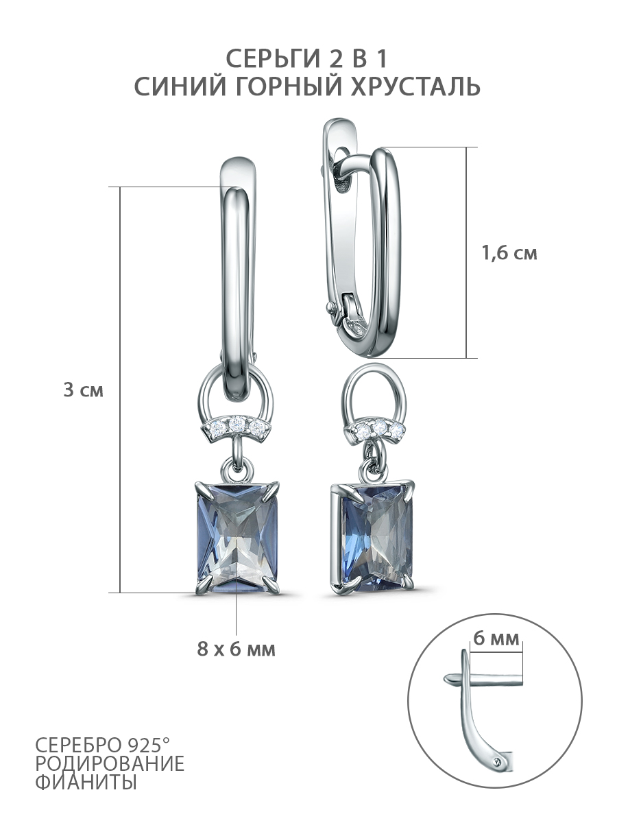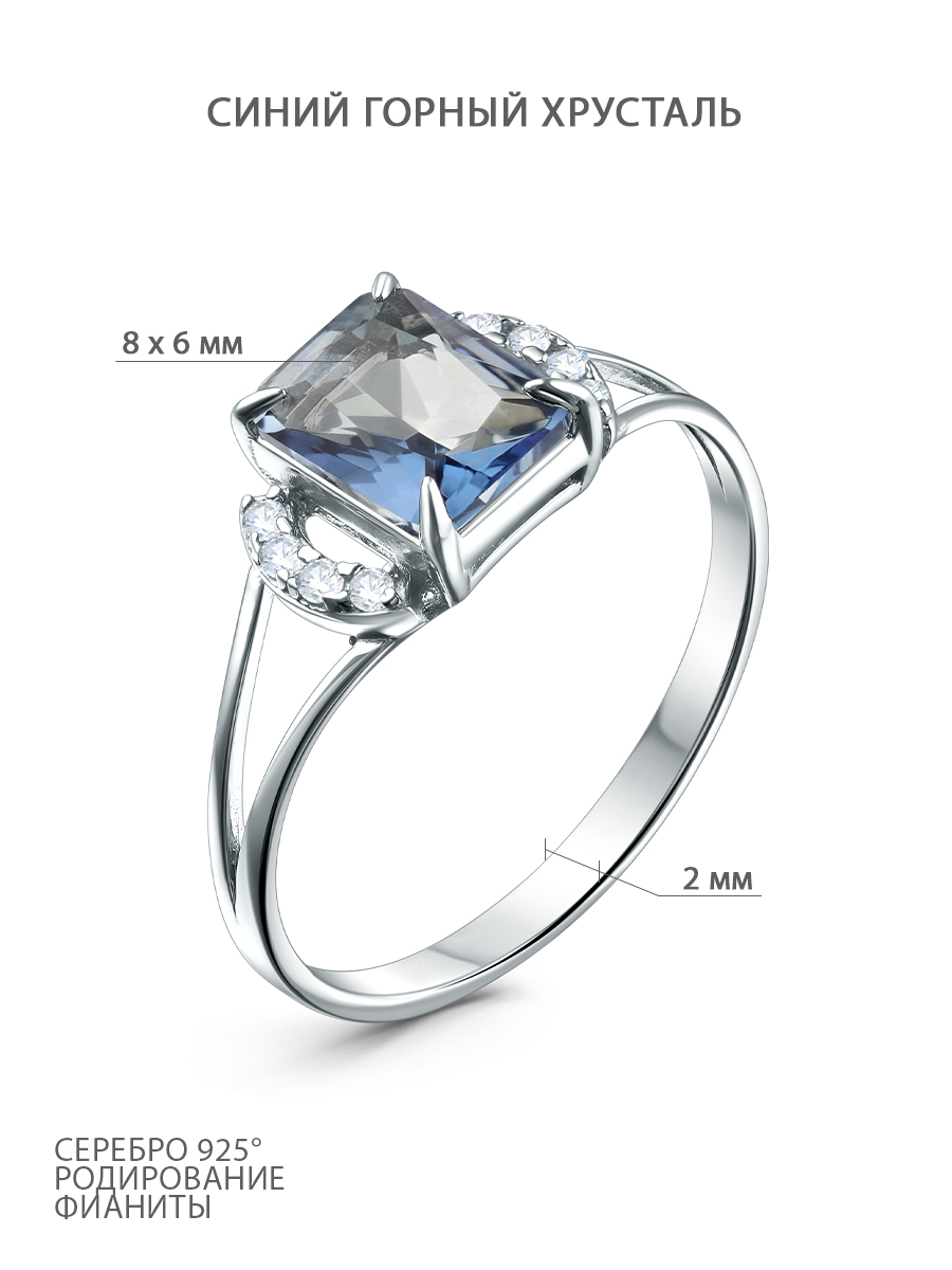 Кольцо из серебра с синим горным хрусталём и фианитами родированное 211270-FA11GH55
