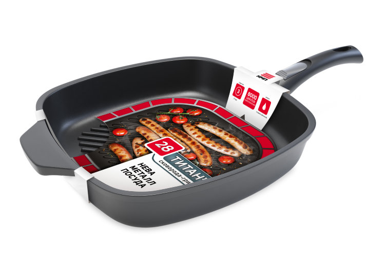 Квадратная сковорода-гриль 28, Титан (полимер-керам) с/р
