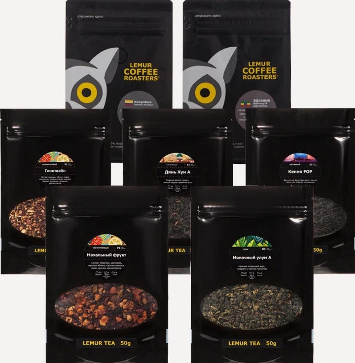 Новогодний набор Happy New Year - премиальный чай (5 видов по 50 г) и кофе в зернах (2 вида по 250 г)