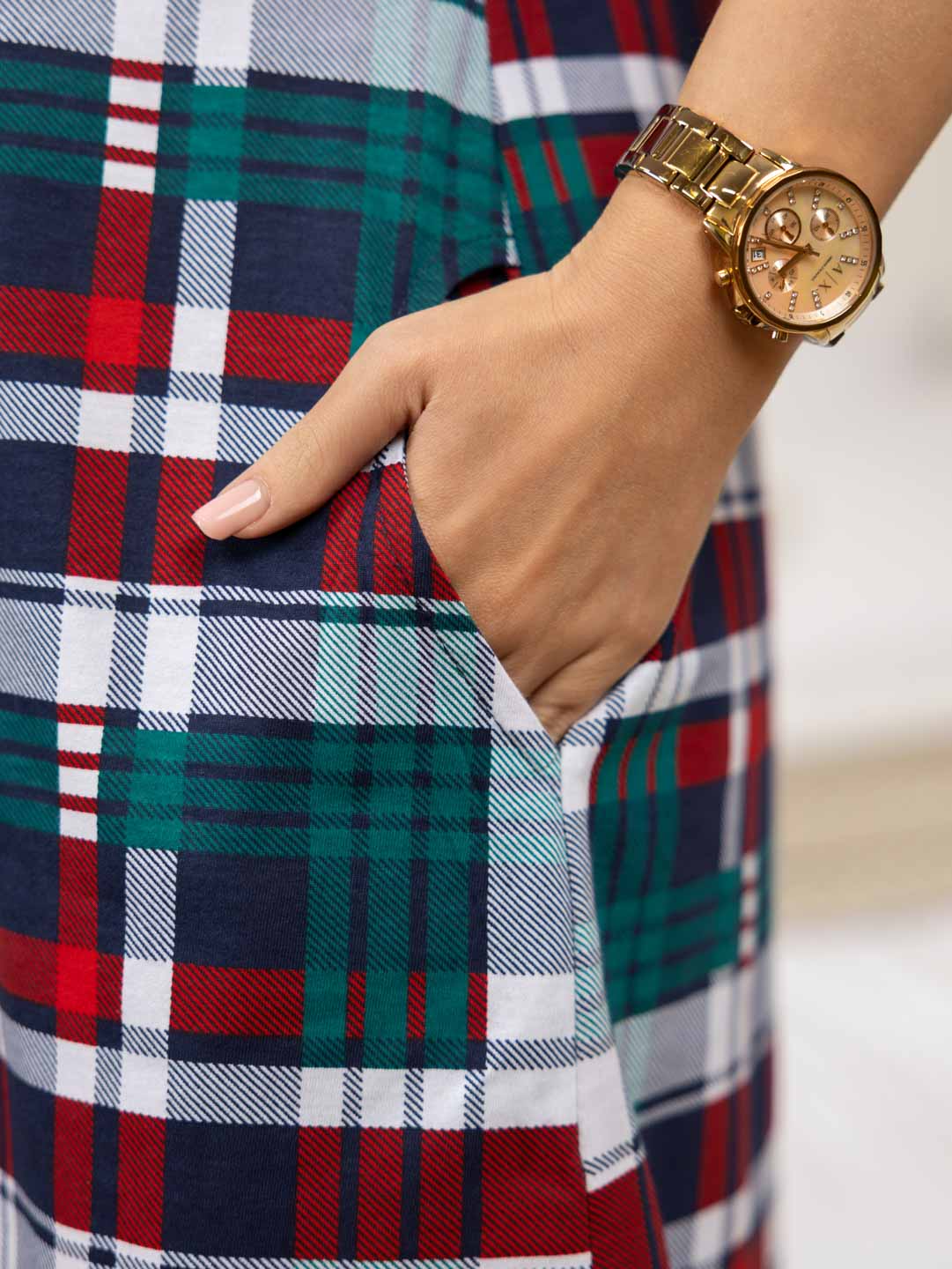 Халат женский трикотажный, длиной до уровня колена. Изделие имеет класический округлый вырез, с застежкой на пуговицы. Рукав - короткий, на манжетах. Удобные карманы с отрезным бочком.