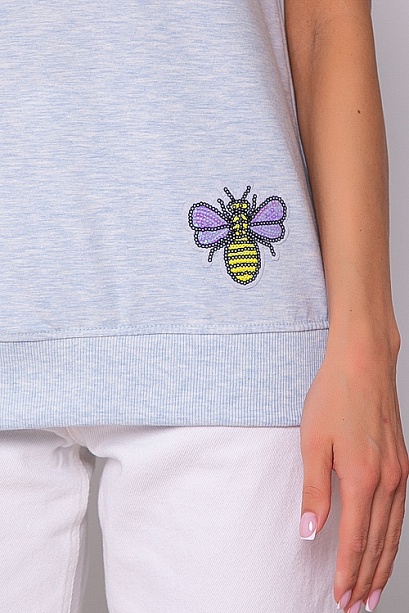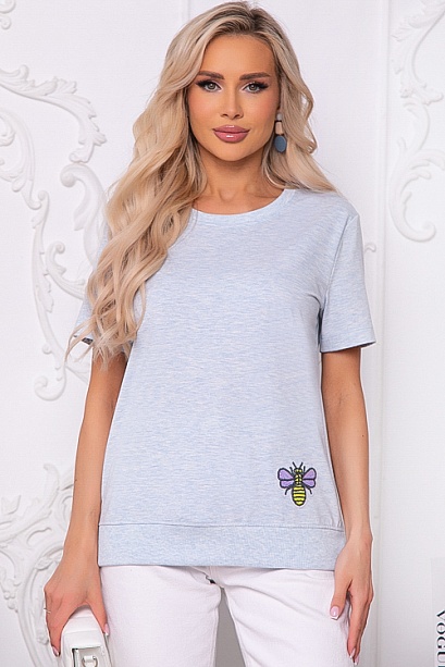 Футболка из трикотажного полотна свободного силуэта с отделкой из трикотажной рибаной и декоративным элементом по полочке.Ткань производство Турция-кулирная гладь и трикотаж рибана компаньон.