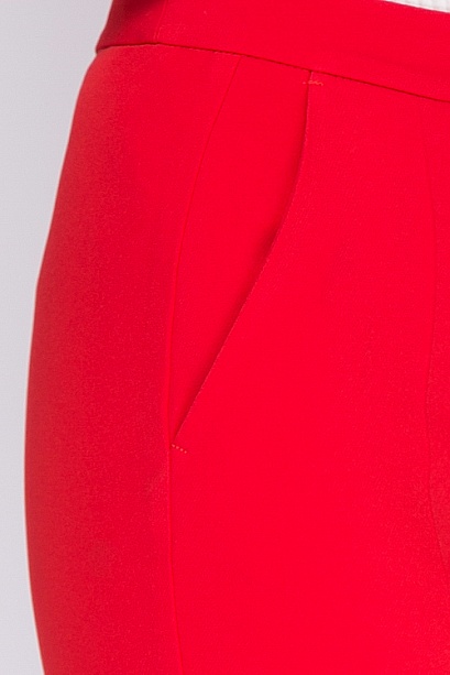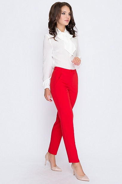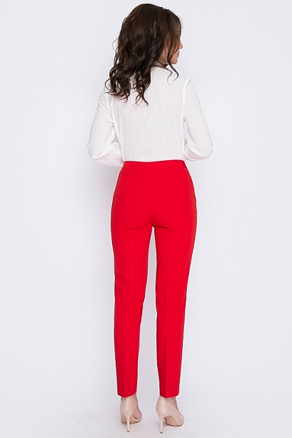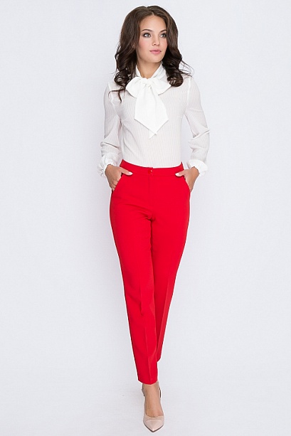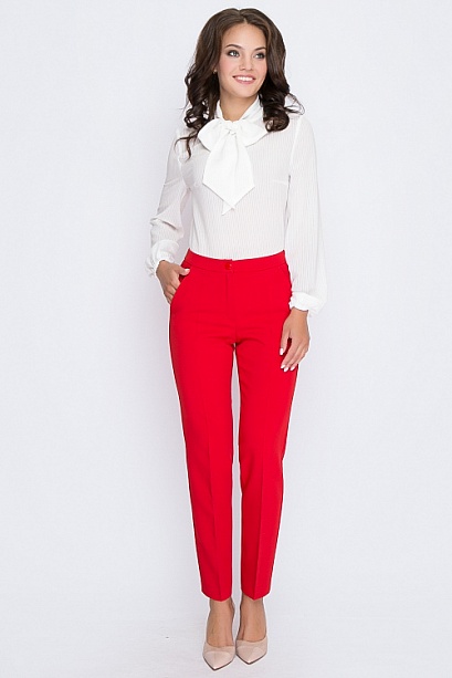 Брюки из плотной костюмной ткани прямого силуэта,со стрелками,с высокой посадкой,на притачном поясе,застегивающимся на пуговицу. По переду обработаны подрезные карманы.Застежка "гульфик" на тесьму "молния". 30% вискоза 65% п/э,5% эластан