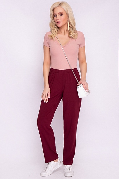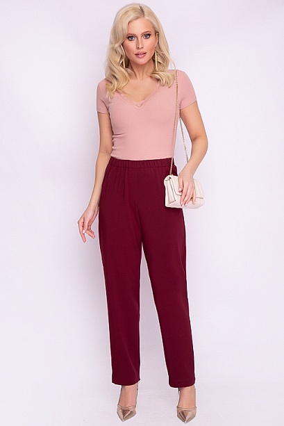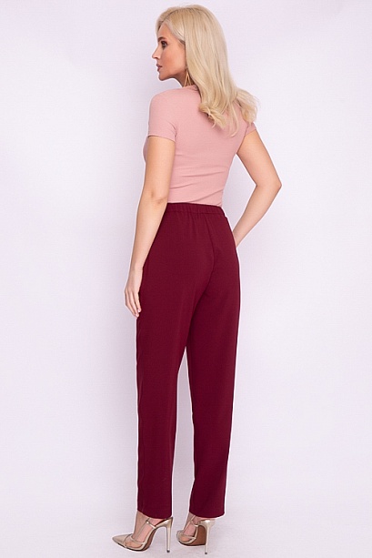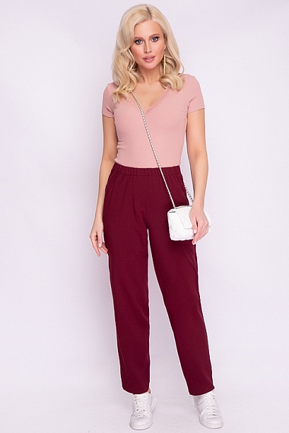 Брюки из легкой костюмной ткани крепового переплетения свободного кроя с функциональными карманами в боковых швах и имитацией гульфика,пояс на резине.
