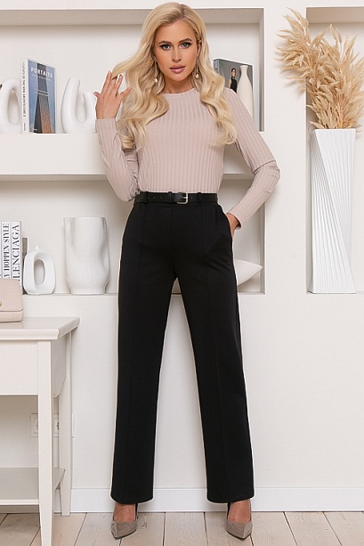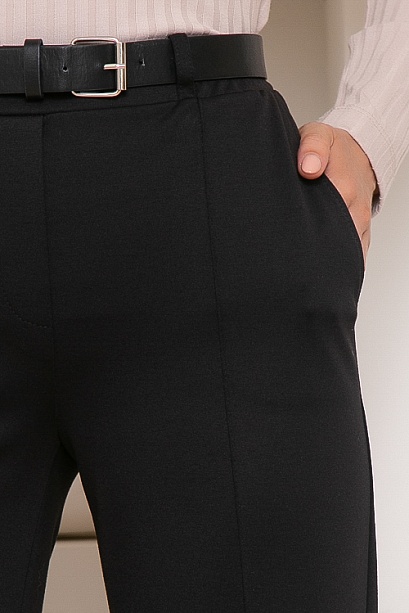 Брюки из плотного трикотажного полотна джерси.Цвет: черный.Ремень в комплект не входит. 50% вискоза,45% п/э,5% лайкра