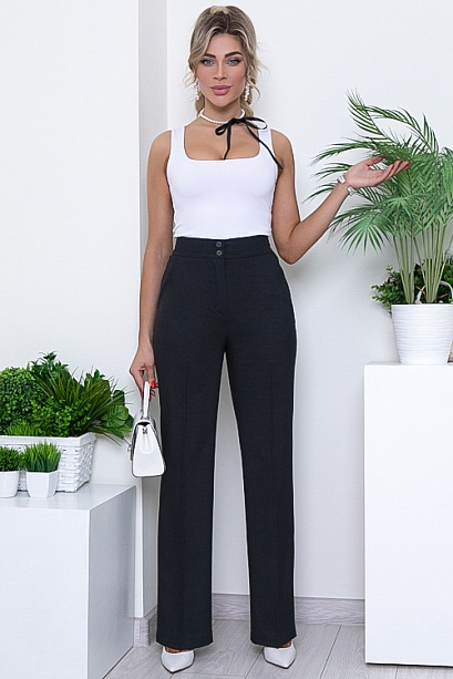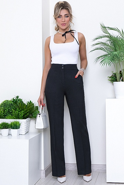 Брюки из качественной вискозной костюмной ткани(ткань производство Турция) с заутюженными стрелками, с высокой посадкой по талии застегивающиеся на молнию в гульфике.Пояс притачной с застежкой на две пуговицы.Для удобства в носке пояс по спинке собран на резину.По бокам подрезные функциональные карманы.