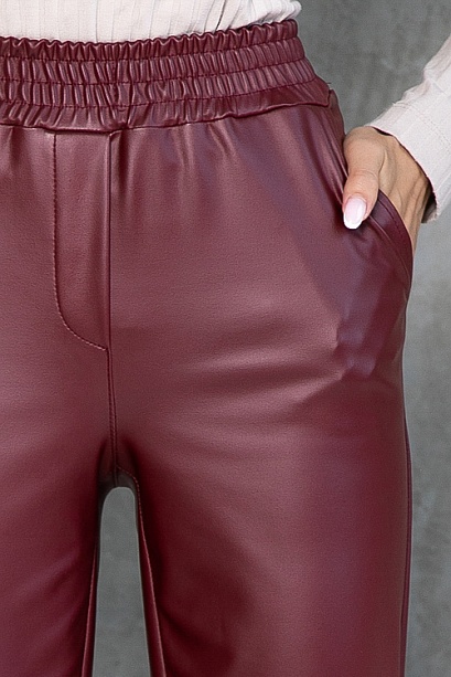 Комфортные брюки из экокожи,в боковых швах функциональные карманы,удобную посадку по талии обеспечивает эластичный пояс на резинке.