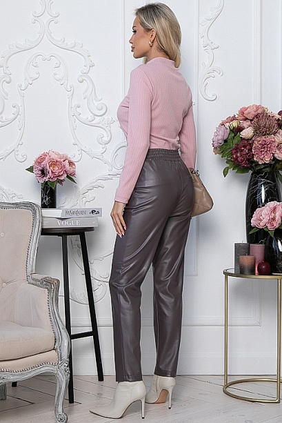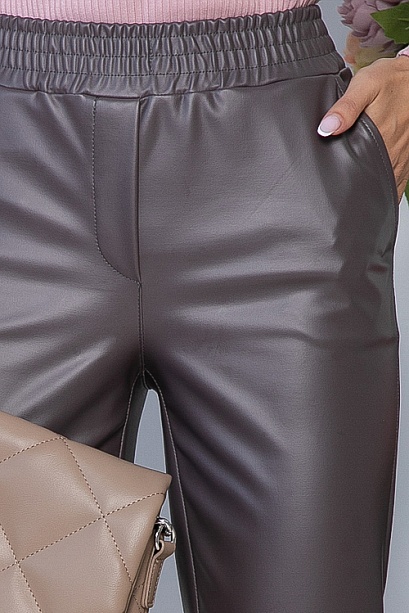 Комфортные брюки из экокожи,в боковых швах функциональные карманы,удобную посадку по талии обеспечивает эластичный пояс на резинке.