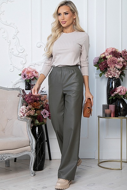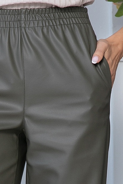 Комфортные брюки прямого,свободного силуэта из экокожи.В боковых швах функциональные карманы,удобную посадку по талии обеспечивает эластичный пояс на резинке. 100% п/э