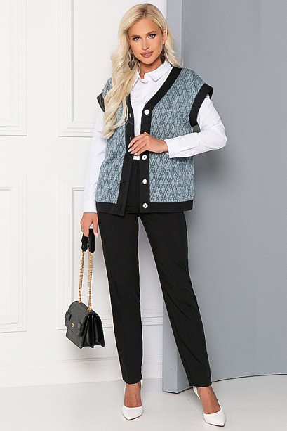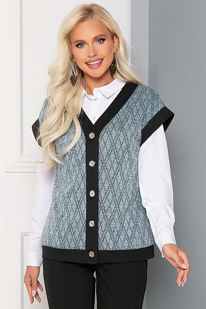 Жакет-жилет из трикотажного полотна с контрастной отделкой и центральной застежкой.