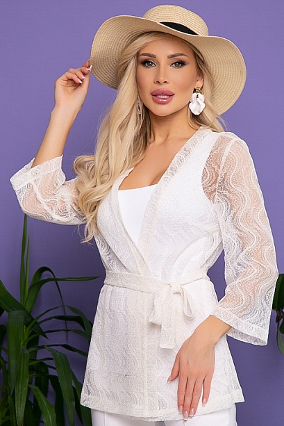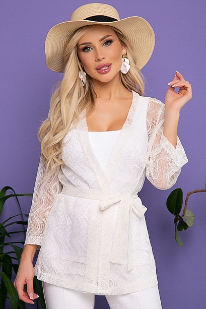 Жакет из кружевного полотна с поясом в комплекте.