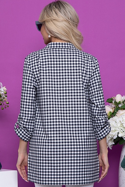 Жакет из комфортной,качественной костюмной ткани(ткань Производство Турция) свободного силуэта,в боковых швах разрезы.Центральная застежка на две пуговицы.По переду удобные накладные карманы.Рукава втачные с патой.