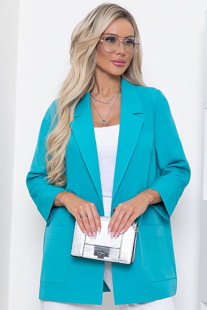 Жакет свободного силуэта из текстильного полотна с застежкой на одну пуговицу.Воротник отложной с лацканами.По переду жакета накладные удобные карманы. 30% вискоза 65% п/э,5% эластан