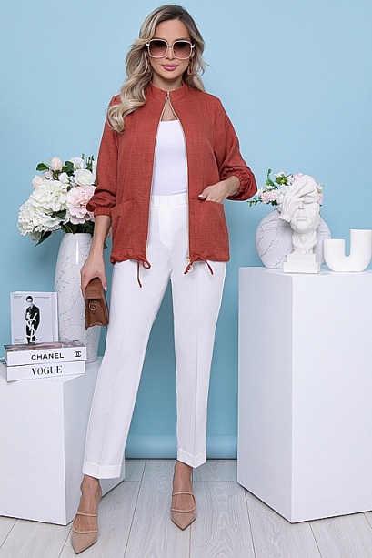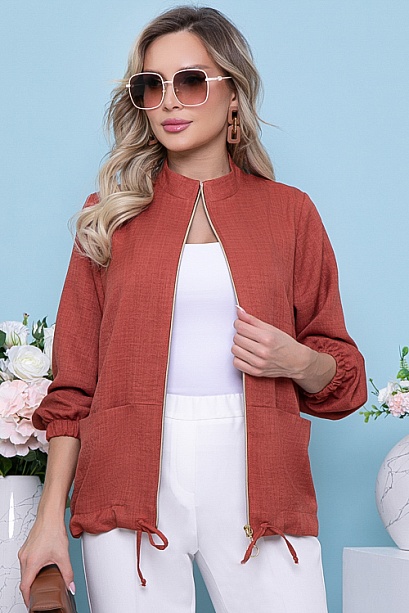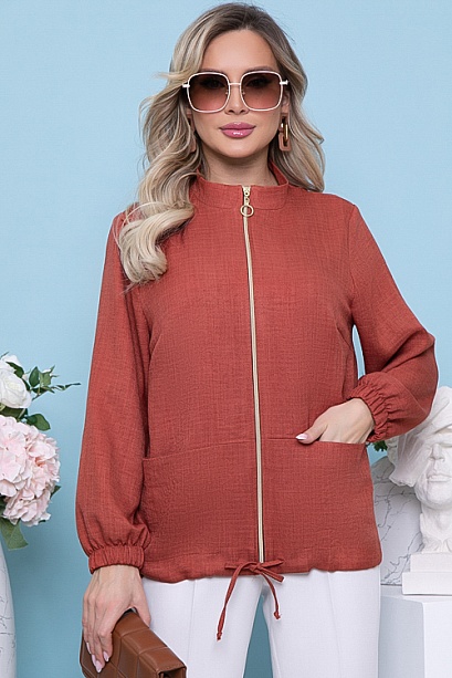 Жакет свободного силуэта из комфортного,легкого текстильного полотна,с центральной застежкой на молнию,с функциональными накладными карманами и кулиской по низу.