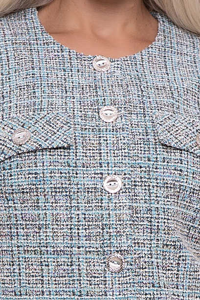 Жакет в стиле шанель из трикотажного полотна твид свободного силуэта с центральной застежкой на петли и пуговицы. 75% вискоза,20% п/э,5% лайкра