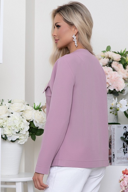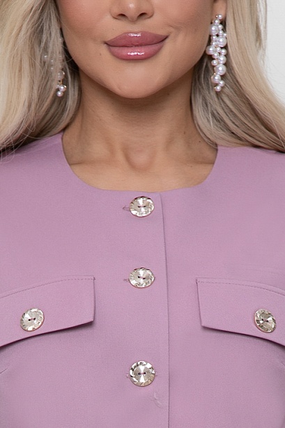 Жакет в стиле шанель из костюмной ткани с центральной застежкой на пуговицы свободного силуэта.По переду декоративные клапаны.