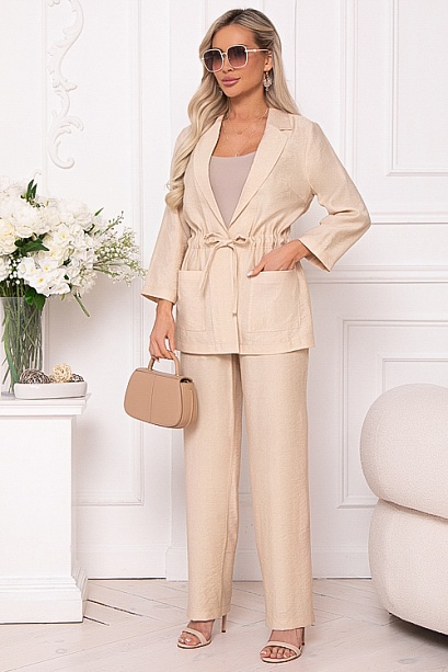 Жакет из легкой костюмной ткани свободного силуэта.Воротник отложной с лацканами.По полочке функциональные накладные карманы.